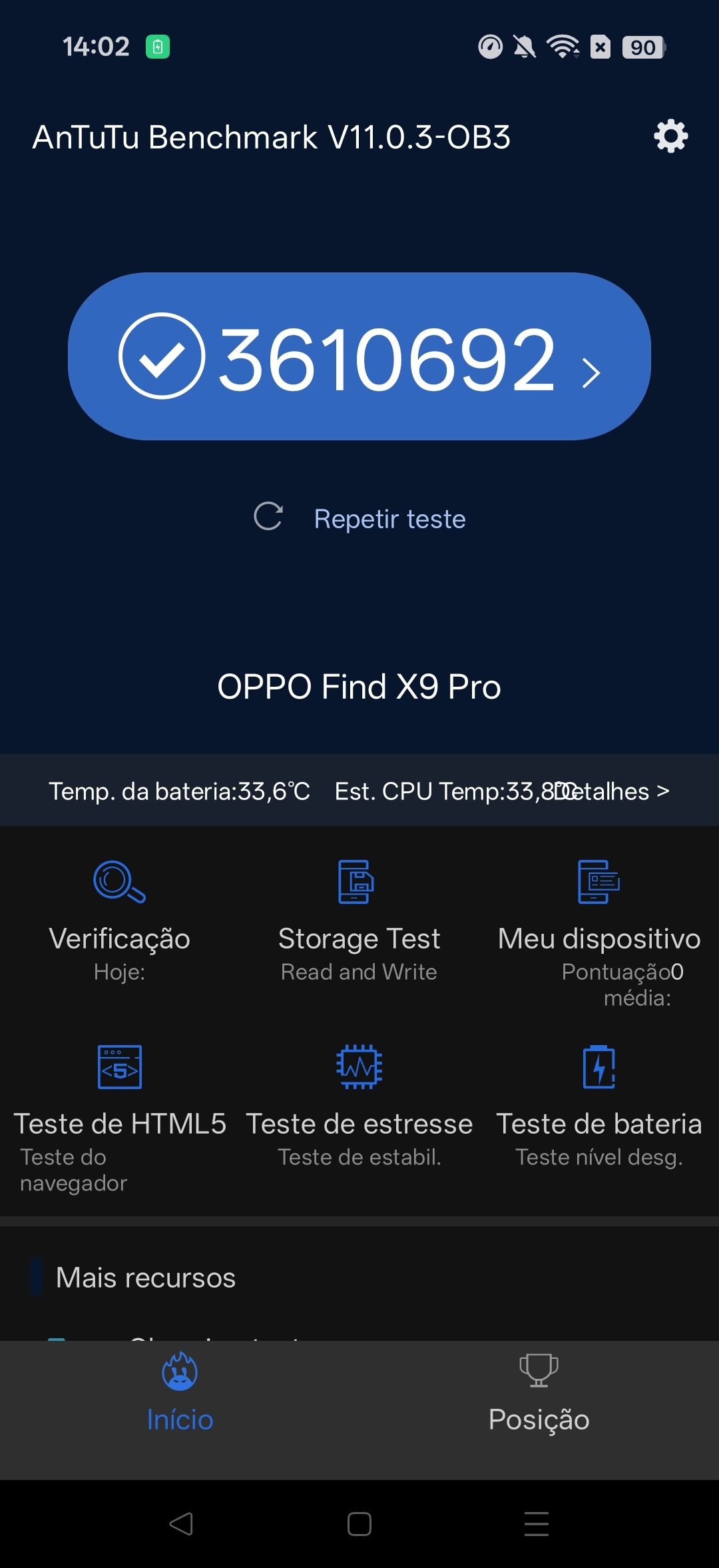 Os resultados foram sempre extraordinários, exceto no teste geral de desempenho do PCMark (Work 3.0), tendo a evolução sido quase nula face ao que registámos no Oppo Find X8 Pro. Onde o novo Find X9 Pro mais se destacou foi na autonomia, ao registar mais de 27 horas no teste de bateria, o que representa um aumento de 8 horas face ao modelo de 2024, que tinha uma bateria ligeiramente inferior a 6000 mAh.