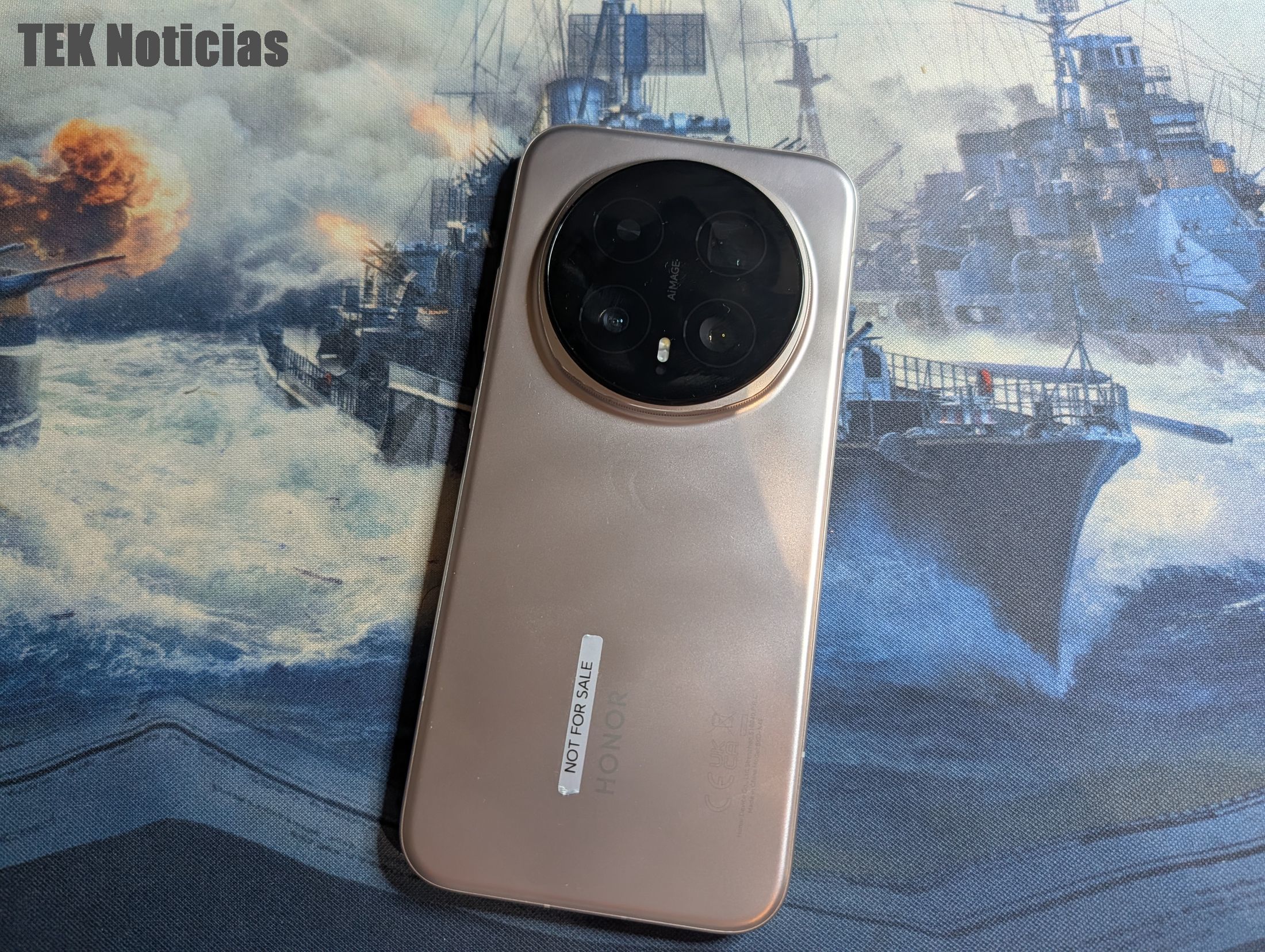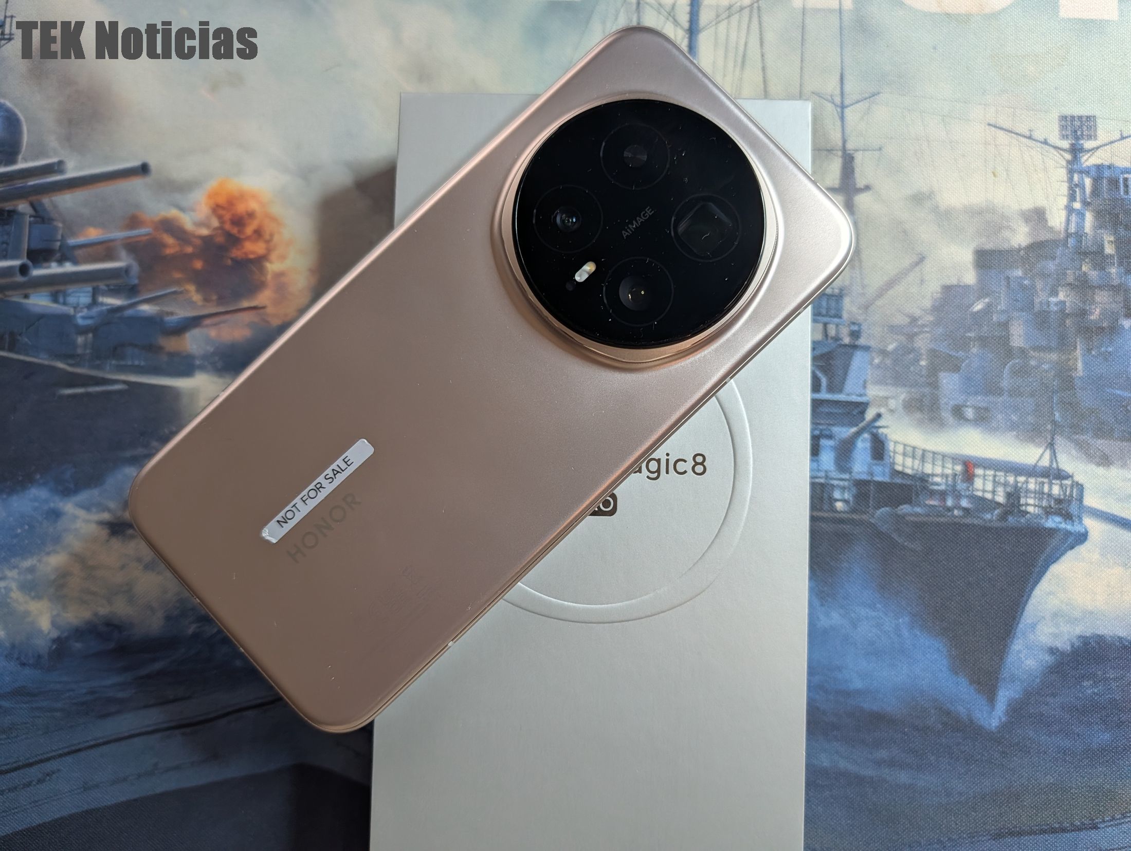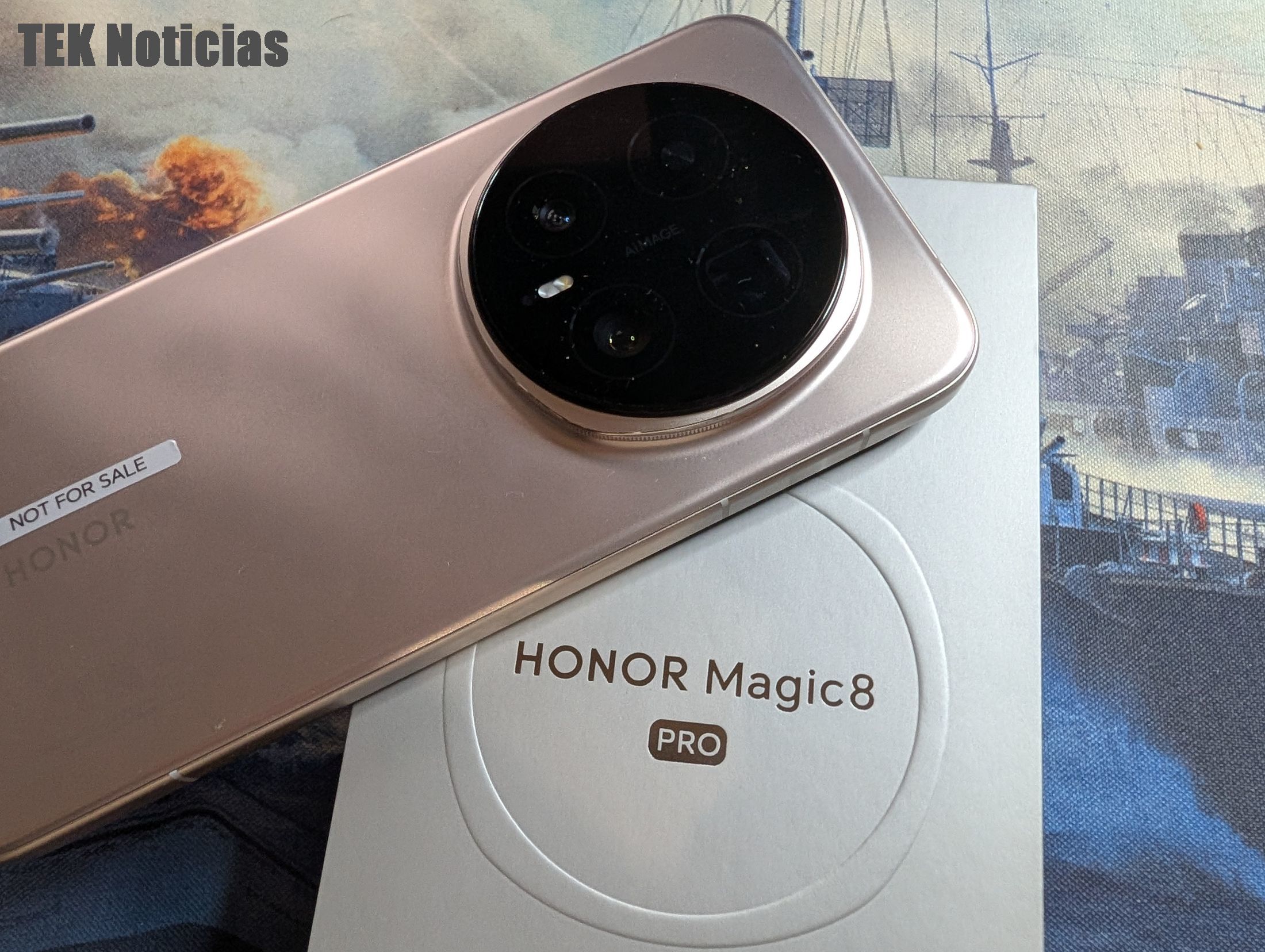 O design e materiais usados são a primeira coisa que se destaca quando se tira o Honor Magic8 Pro da caixa, mantendo-se a utilização do módulo de câmaras redondo na traseira, que tem grande impacto visual mas que cria um certo equilíbrio na utilização, mesmo quando pousado sobre a mesa. A cor que testámos é a Sunrise Gold, um dourado que é leve, pouco intenso e elegante, e há também opções em preto.
