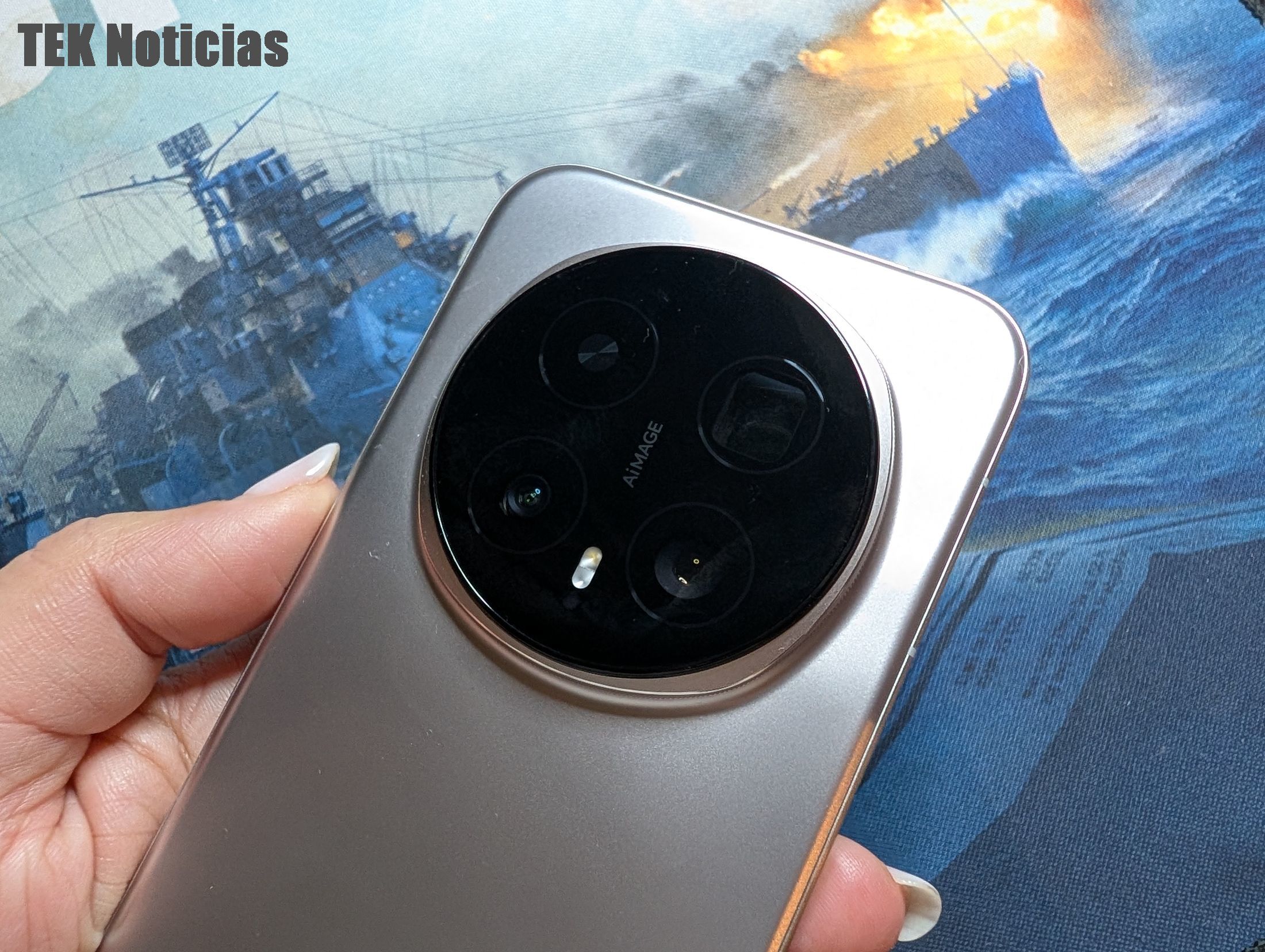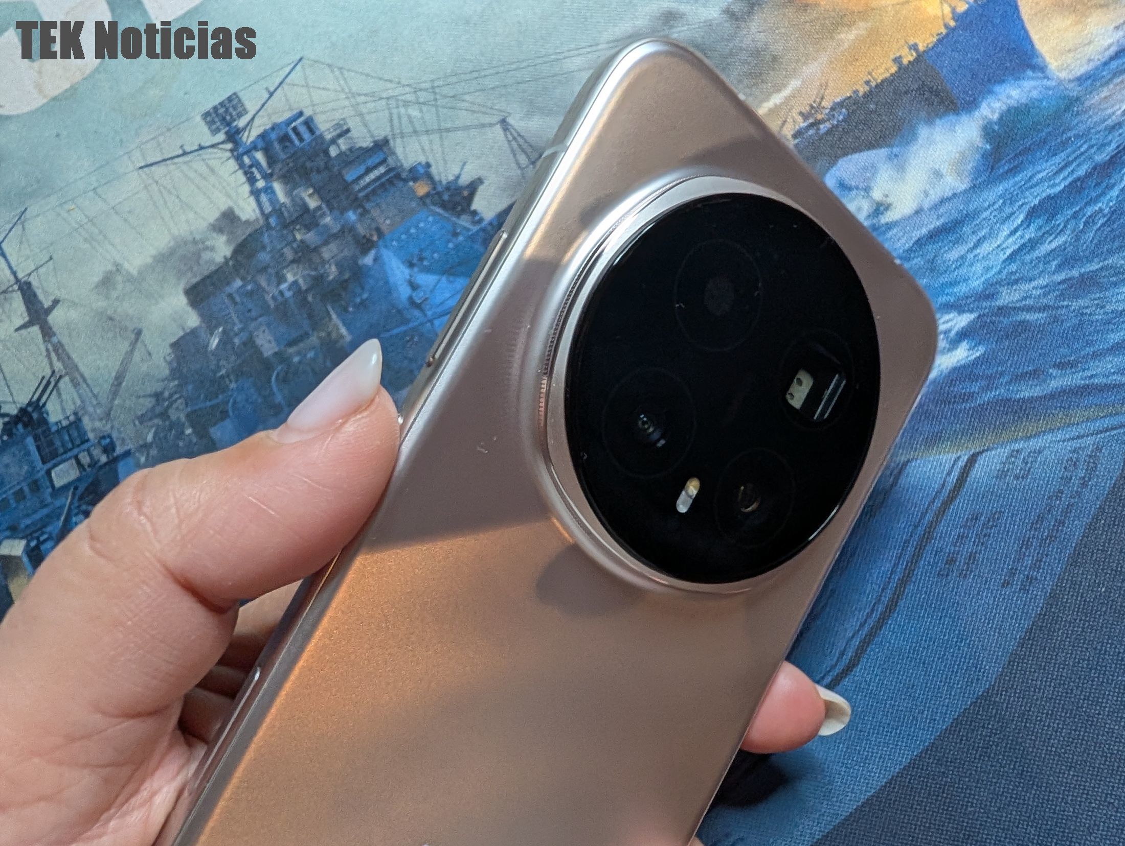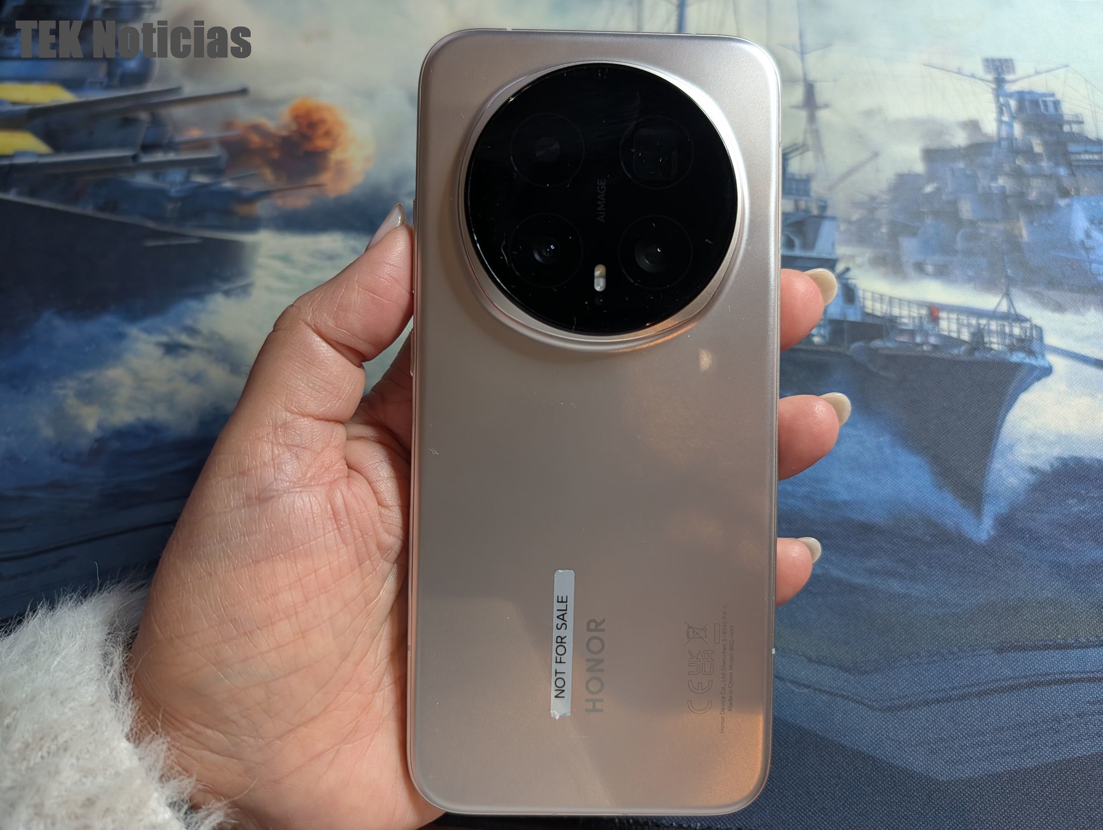 O design e materiais usados são a primeira coisa que se destaca quando se tira o Honor Magic8 Pro da caixa, mantendo-se a utilização do módulo de câmaras redondo na traseira, que tem grande impacto visual mas que cria um certo equilíbrio na utilização, mesmo quando pousado sobre a mesa. A cor que testámos é a Sunrise Gold, um dourado que é leve, pouco intenso e elegante, e há também opções em preto.