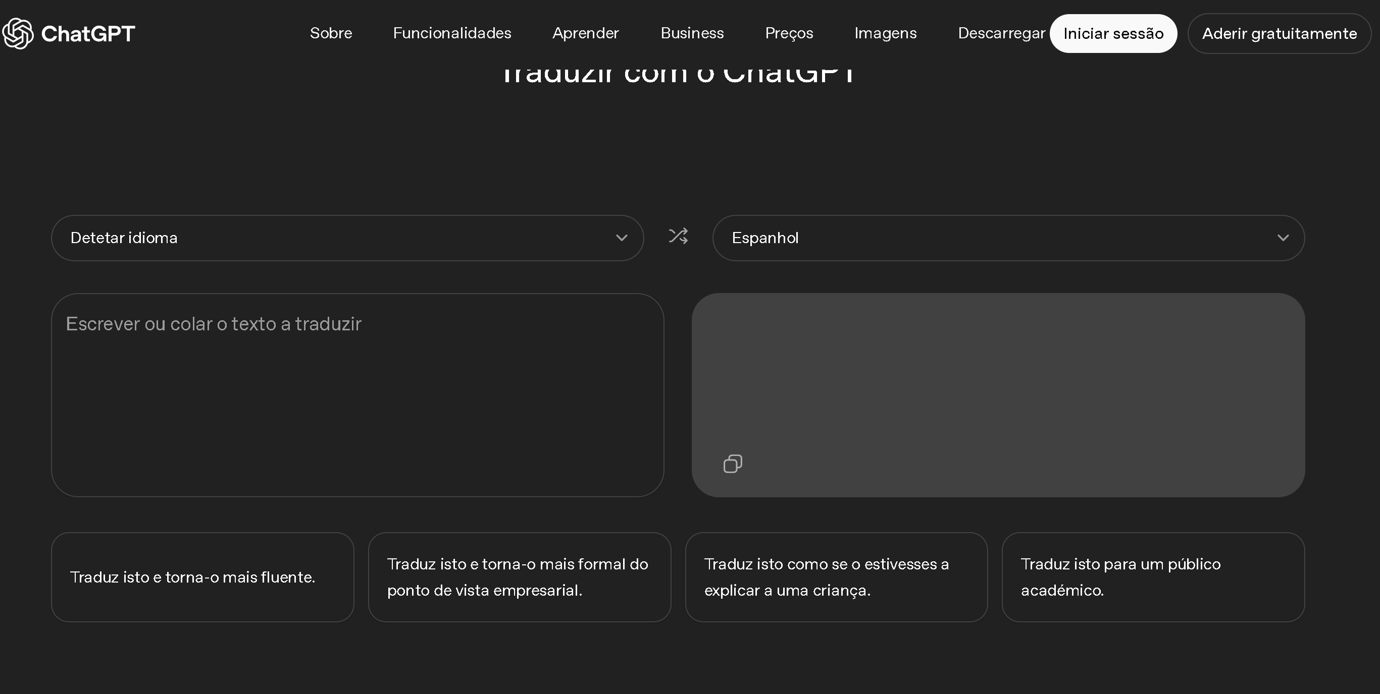 No ChatGPT Translate pode fazer pedidos adicionais, para tornar o texto traduzido mais fluente, adaptar a um público mais académico, ou traduzir como se estivesse a explicar a uma criança.