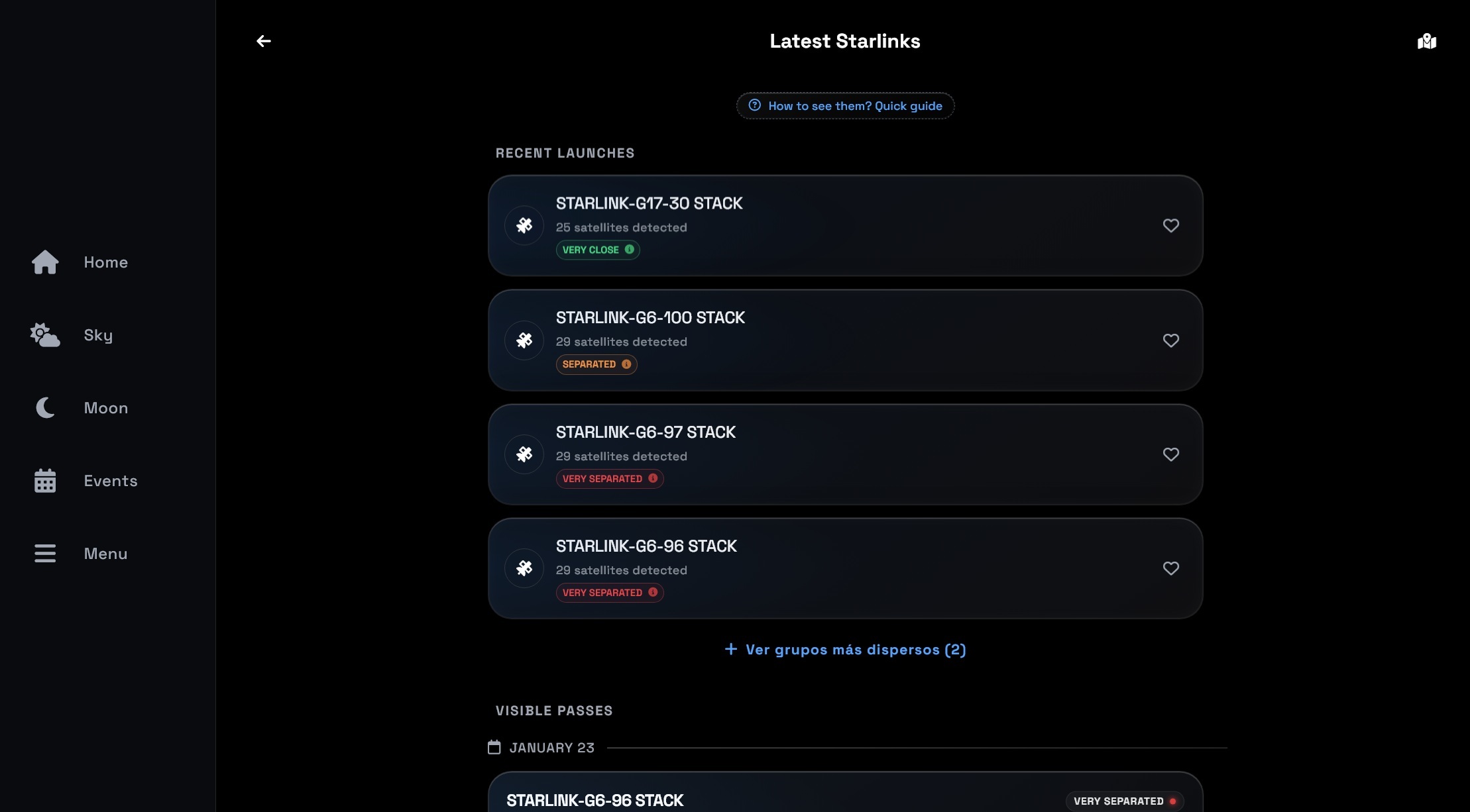 O site permite ainda ativar notificações a avisar quando um satélite específico estará prestes a passar pela sua zona. Basta dar permissão ao navegador para receber alertas locais no dispositivo. Para além da ISS, a plataforma permite seguir os lançamentos de satélites Starlink da SpaceX, que frequentemente criam espetáculos visuais ao passarem em formação logo após o lançamento.