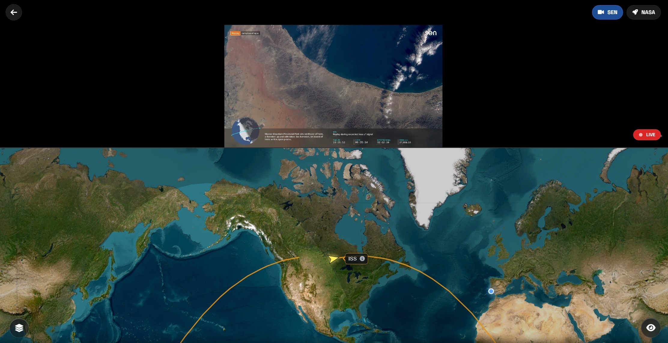 Entre as principais funcionalidades está o rastreamento em direto da ISS, com visualização num mapa interativo que mostra a trajetória atual e futura da estação espacial. É possível saber exatamente quando a ISS será visível a olho nu desde a sua localização, permitindo planear observações com antecedência. Clicando no botão “Live Camera”, poderá aceder a diversas fontes de sinal que permitem visualizar as câmaras dentro da própria estação, assim como a câmaras ao longo da terra que estão a apontar para o céu para a seguirem no céu.