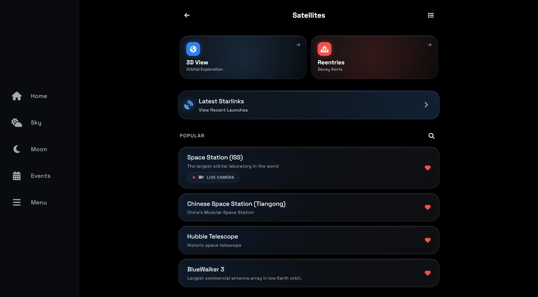 A plataforma permite seguir em tempo real a posição de milhares de satélites que orbitam a Terra, com destaque para a Estação Espacial Internacional (ISS), a Estação Espacial Chinesa (Tiangong), o Telescópio Espacial Hubble, o satélite BlueWalker 3 e a constelação de satélites da Starlink. A interface é desenhada para ser intuitiva, mesmo para quem está a dar os primeiros passos na observação celeste.