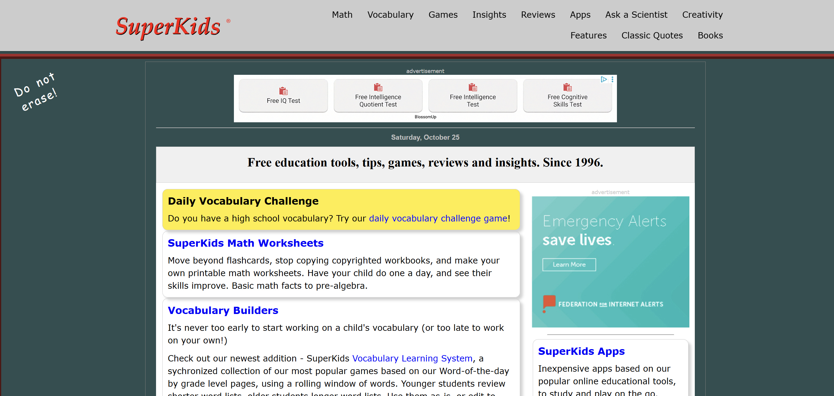 Um dos processos de escolha de uma página para a rubrica do “site do dia” é verificar se o mesmo já não tinha sido publicado no TEK Notícias. Foi com uma agradável surpresa que encontrámos o Superkids, que diz operar desde 1996. Mais surpreendente é ver que o TEK escreveu sobre o mesmo em dezembro de 2021, ou seja, há quase 24 anos, e ambos continuam a dar cartas.