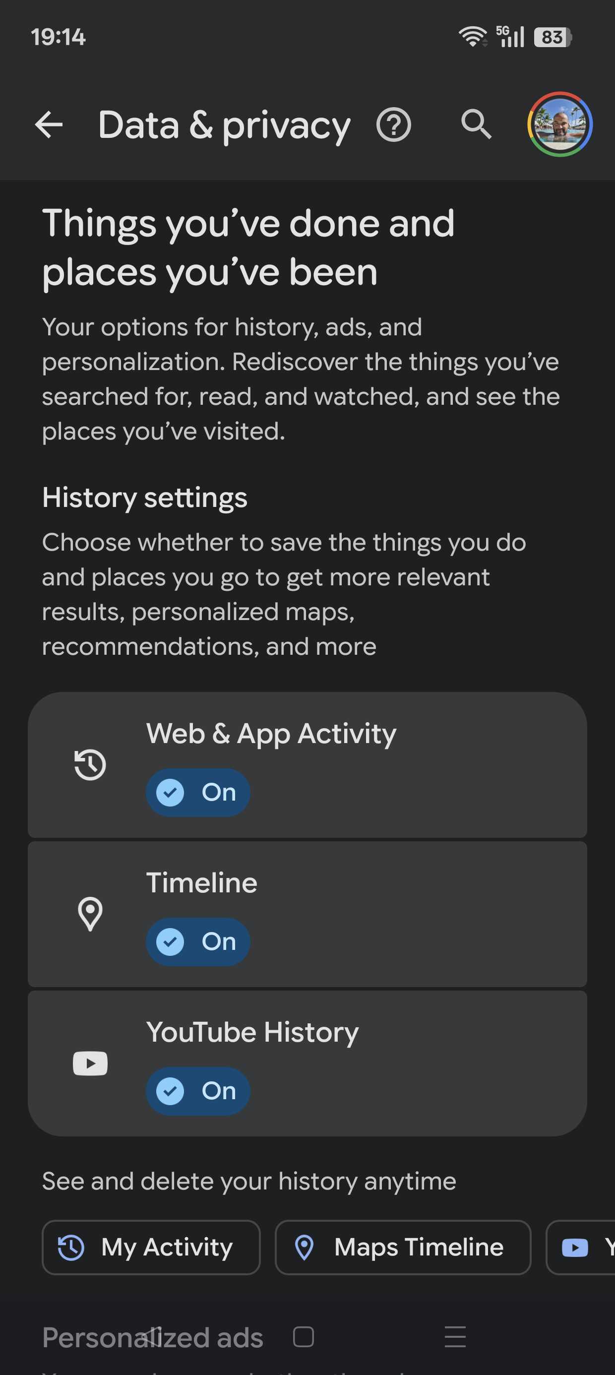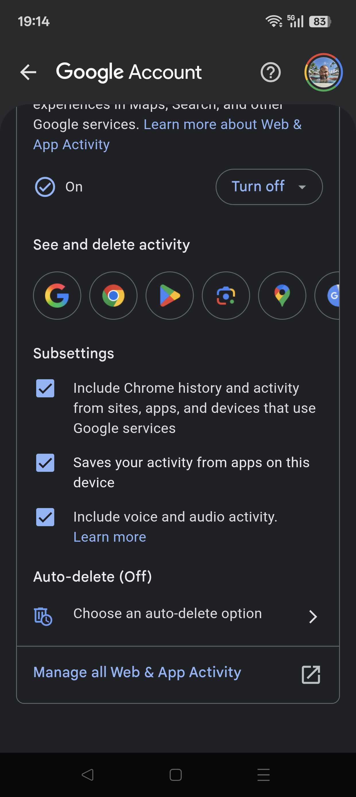 - Localize o Histórico: No ecrã seguinte, clique no botão “Web & App Activity”.