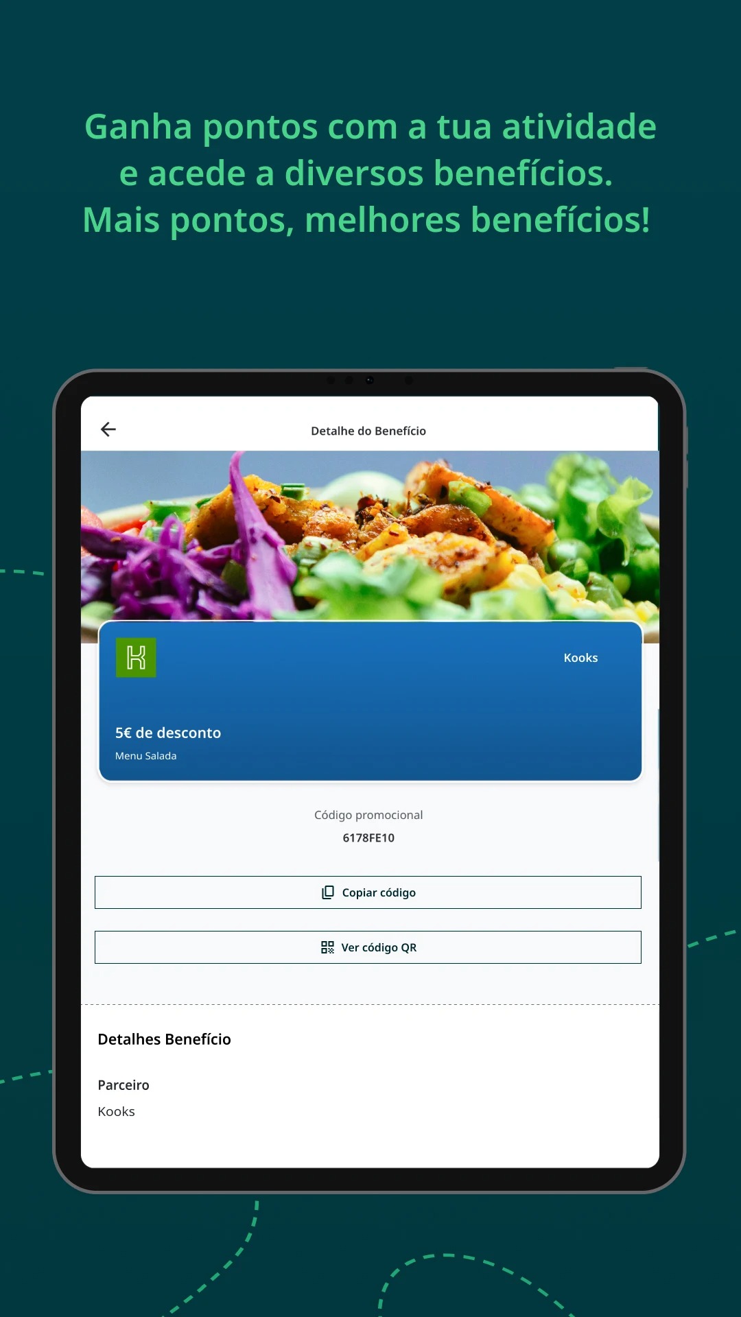 Na aplicação há conteúdos educativos personalizados, e podem ser consultadas parcerias, iniciativas e locais para a prática desportiva. É também possível fazer a integração com outras aplicações e wearables.