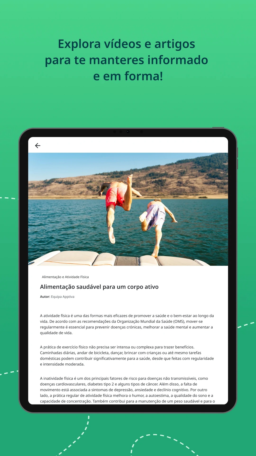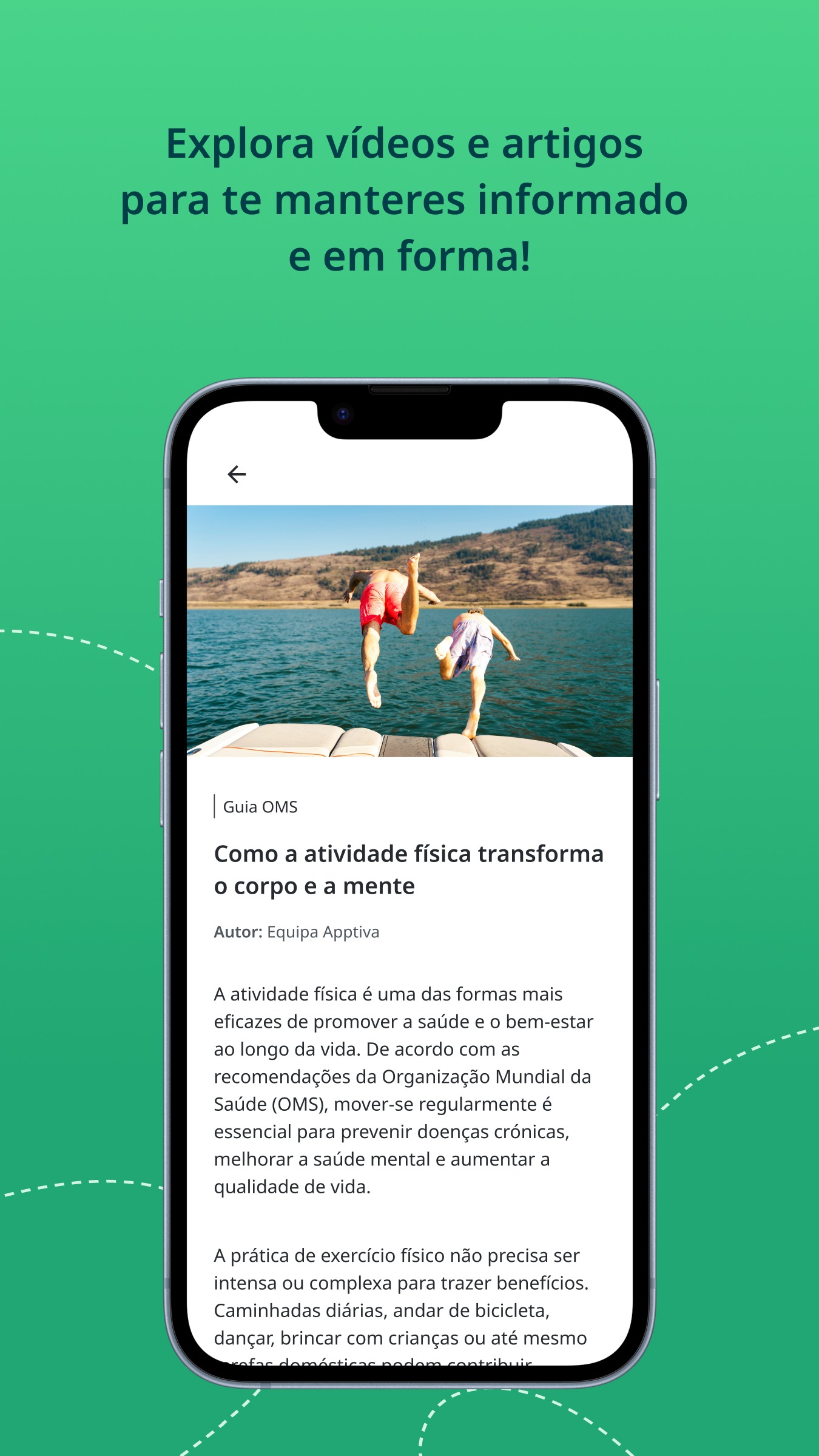 A Apptive faz parte do Sistema Universal de Apoio à Vida Ativa (SUAVA) e há uma campanha em curso para promover os ideais de prática de atividade física. A plataforma é também um convite à mudança de hábitos para um estilo de vida mais ativo e saudável.