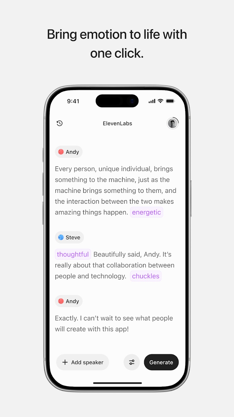 A interface foi desenhada especificamente para vidas criativas, permitindo escolher entre uma vasta seleção de vozes premium, criar e editar conteúdos diretamente na aplicação, e partilhar resultados de forma integrada para plataformas como TikTok, Instagram, YouTube Shorts e CapCut. Os utilizadores podem sincronizar as suas contas ElevenLabs para aceder a vozes favoritas ou clones de voz criados na versão web, garantindo continuidade no trabalho entre dispositivos.