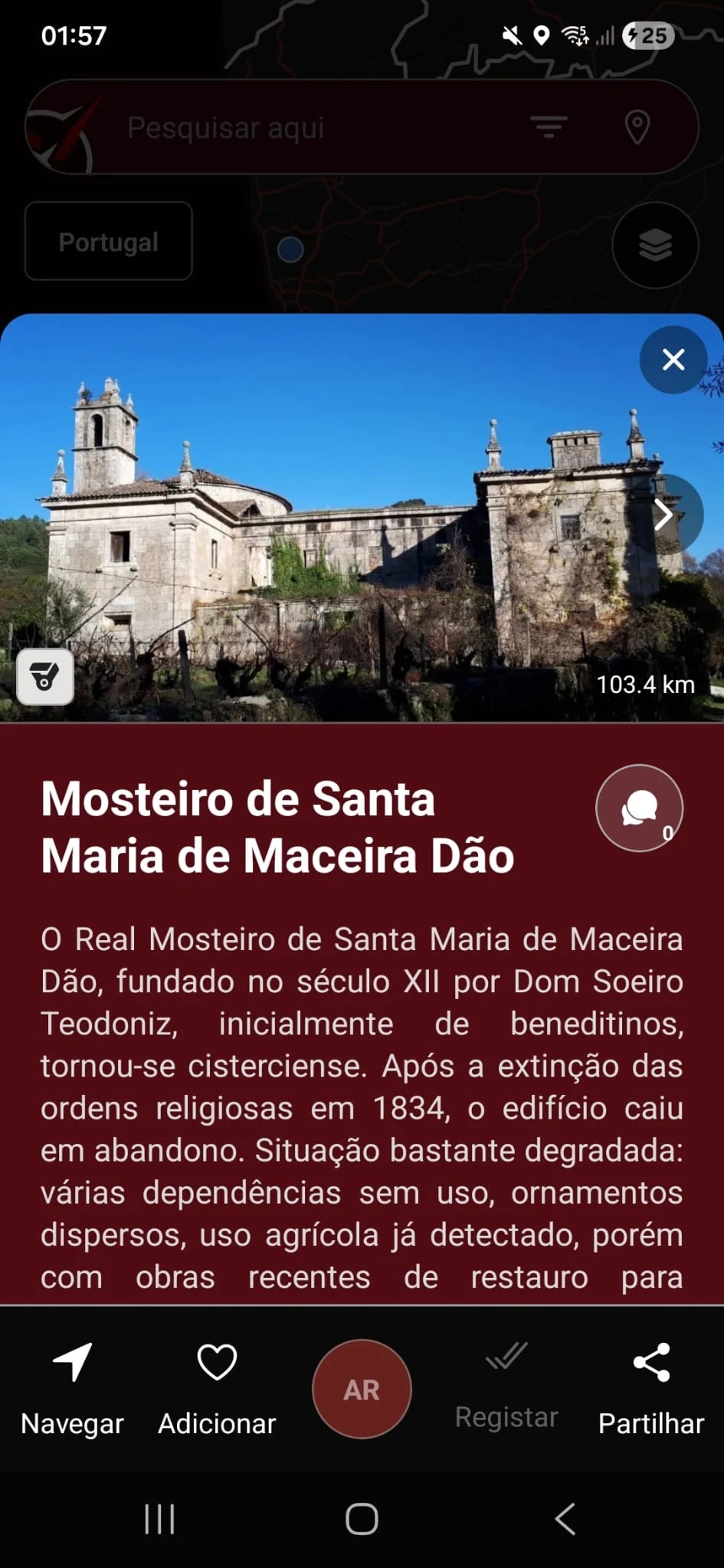 Pode explorar o mapa e aceder a detalhes dos locais já identificados, ou explorar o feed da comunidade e os locais mais próximos geograficamente. Na pesquisa pode adicionar filtros.