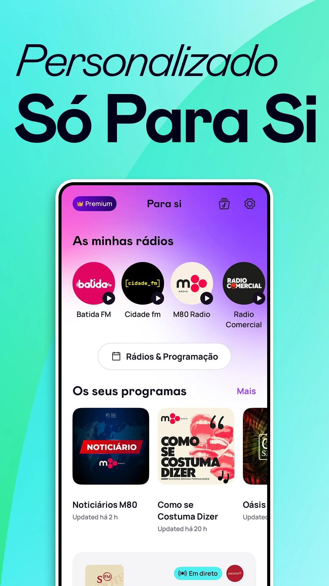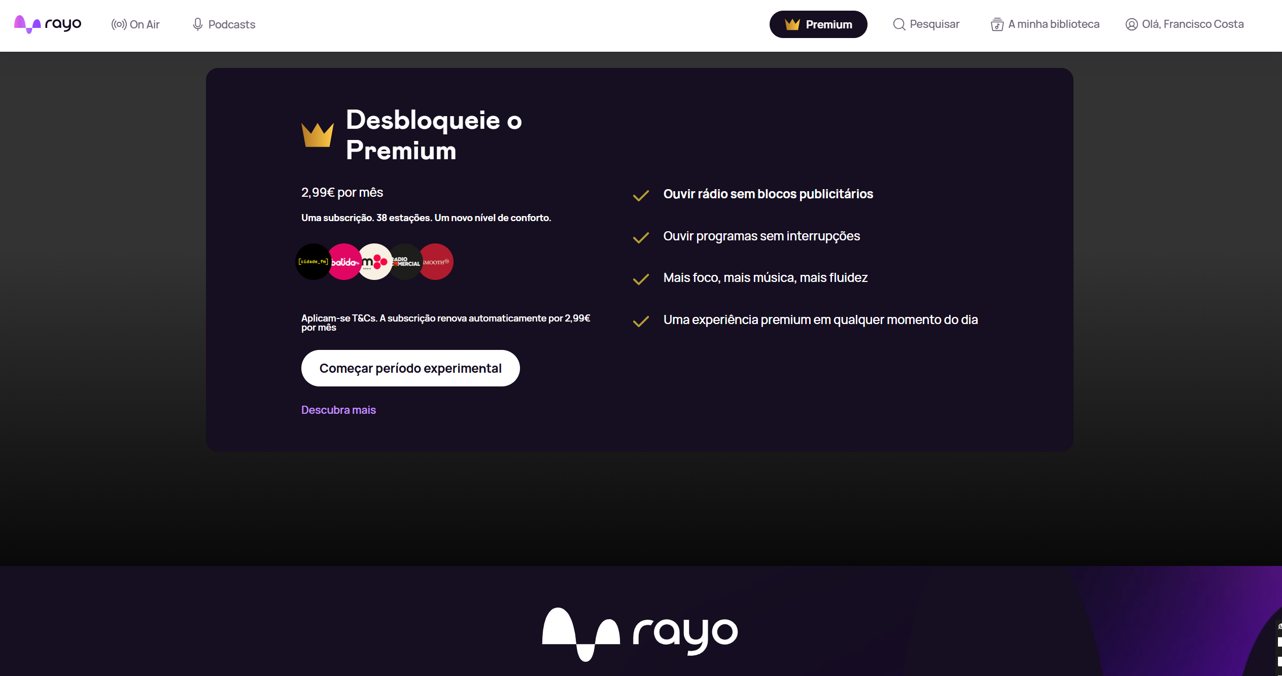 Rádio Comercial, m80 Rádio, Cidade FM e Smooth FM são as rádios que a Rayo inclui, juntando numa única aplicação a possibilidade de ouvir as rádios em direto, música e podcasts para os seguidores das marcas da Bauer Media Audio Portugal.