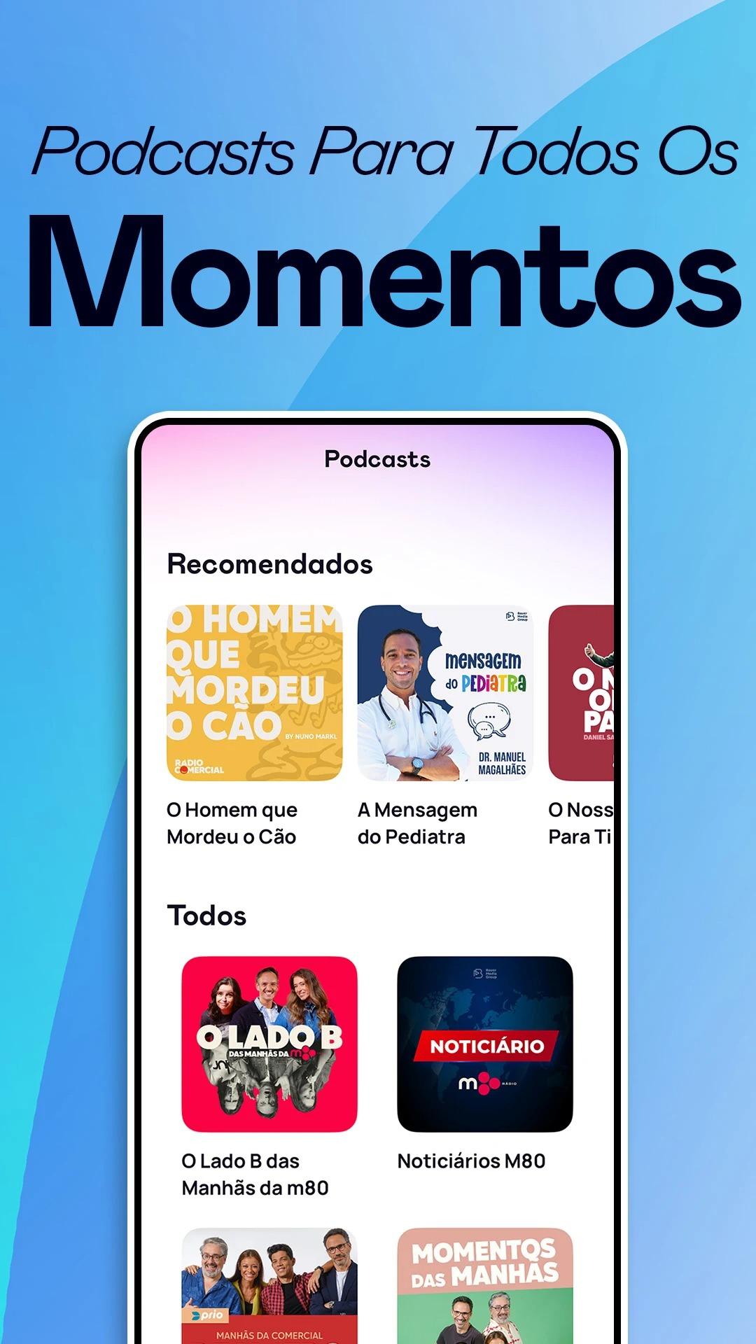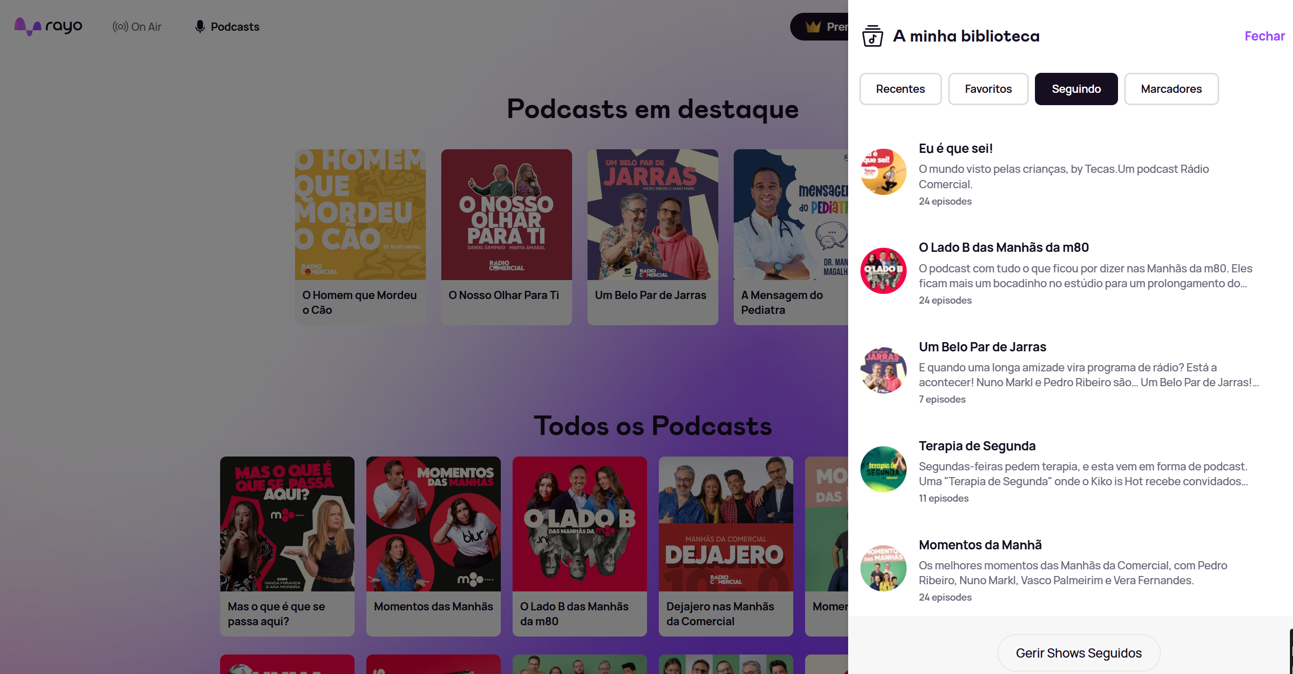 Na área de podcasts encontra os episódios de O Homem que mordeu o cão e o Rebenta a Bolha, entre outros programas.