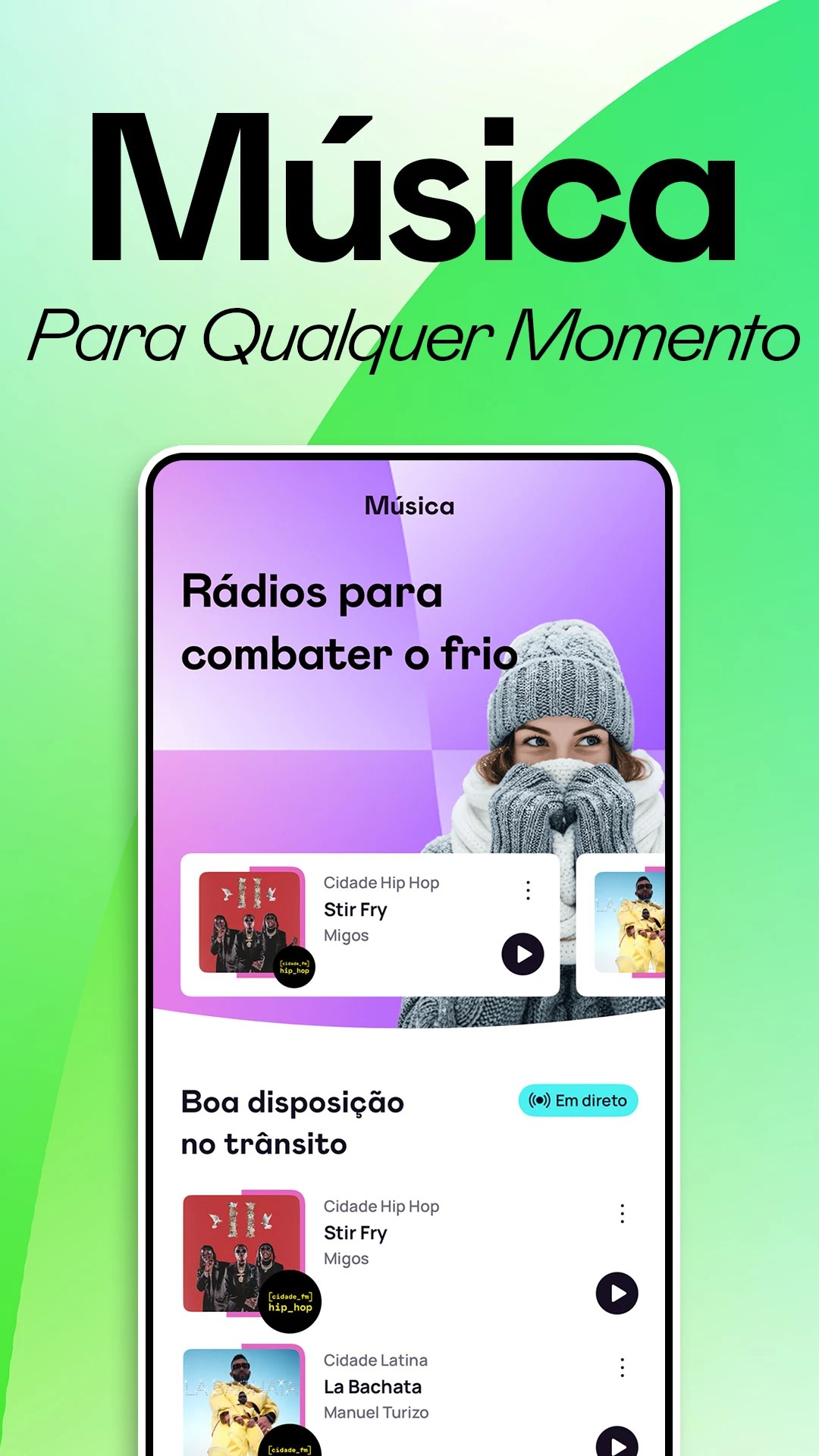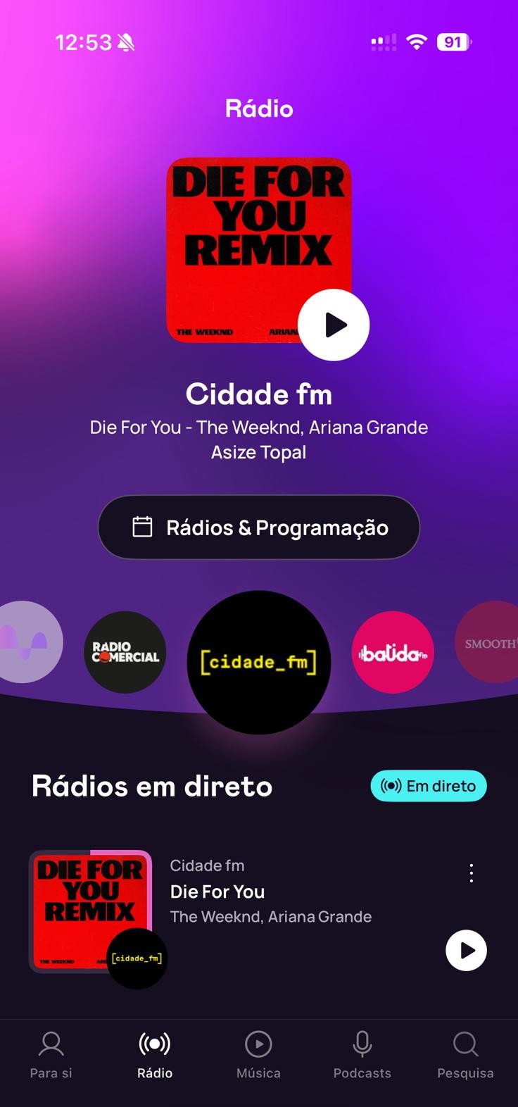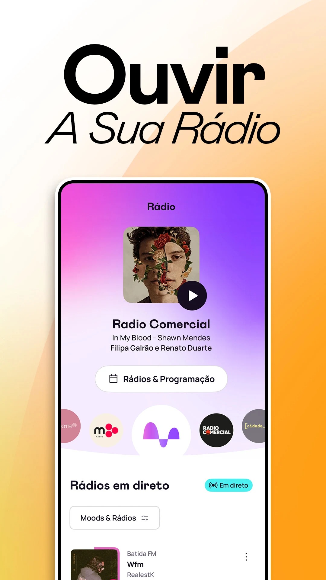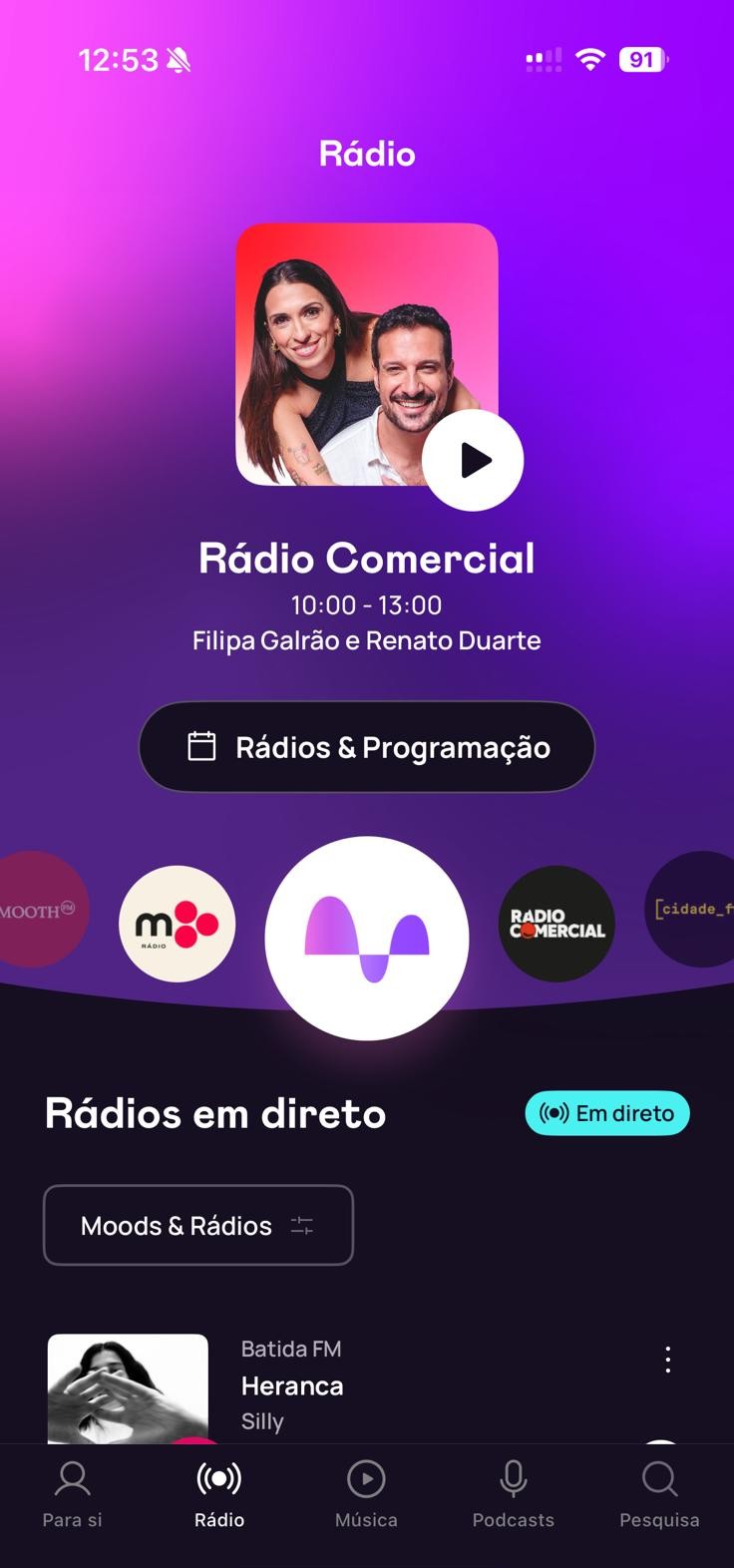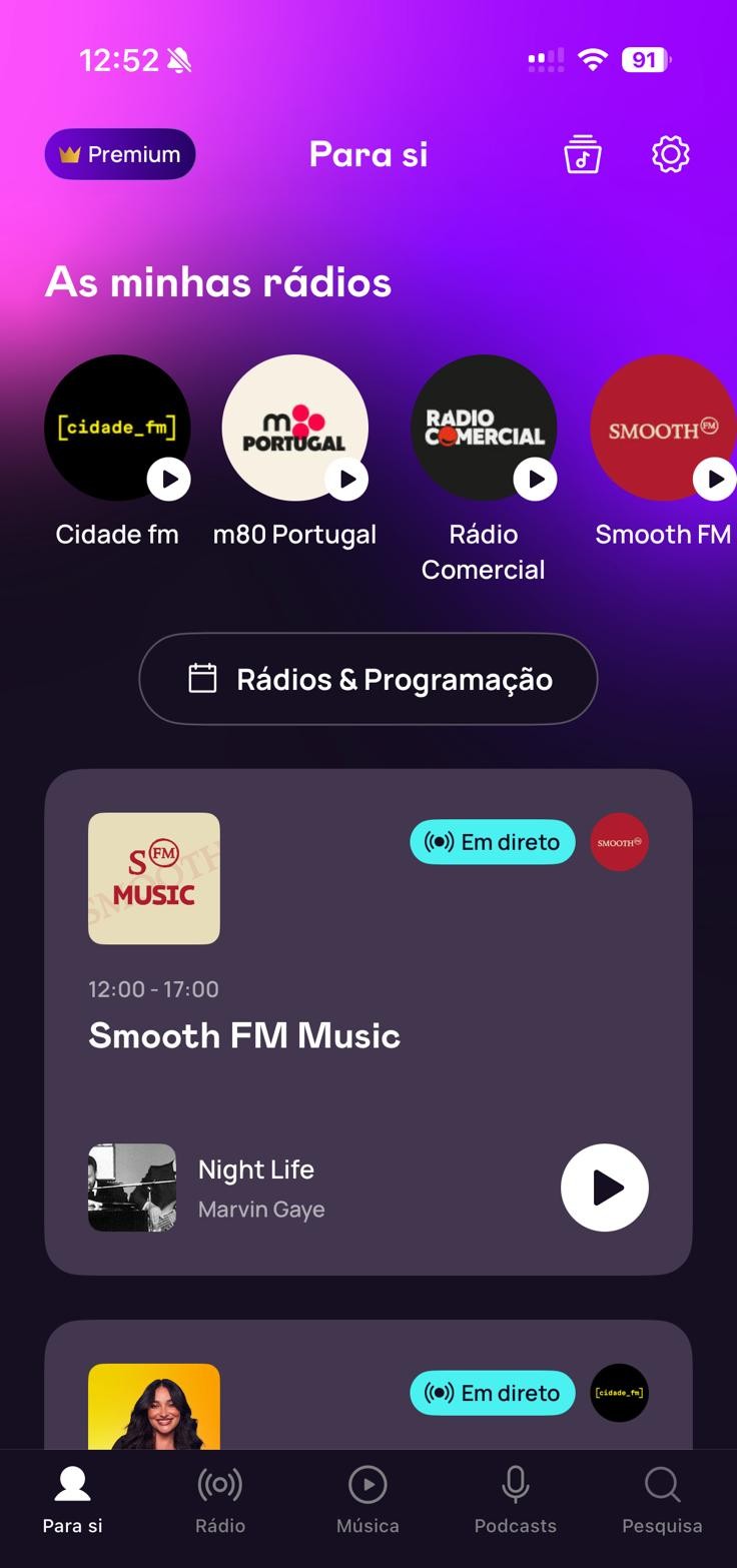 Na aplicação pode escolher qual a rádio que quer ouvir, escutar a emissão em direto ou navegar entre as músicas que já passaram. Existem playlists organizadas por estados de espírito, temas e momentos do dia, onde estão o acompanhamento para uma Road Trip ou para treinar.