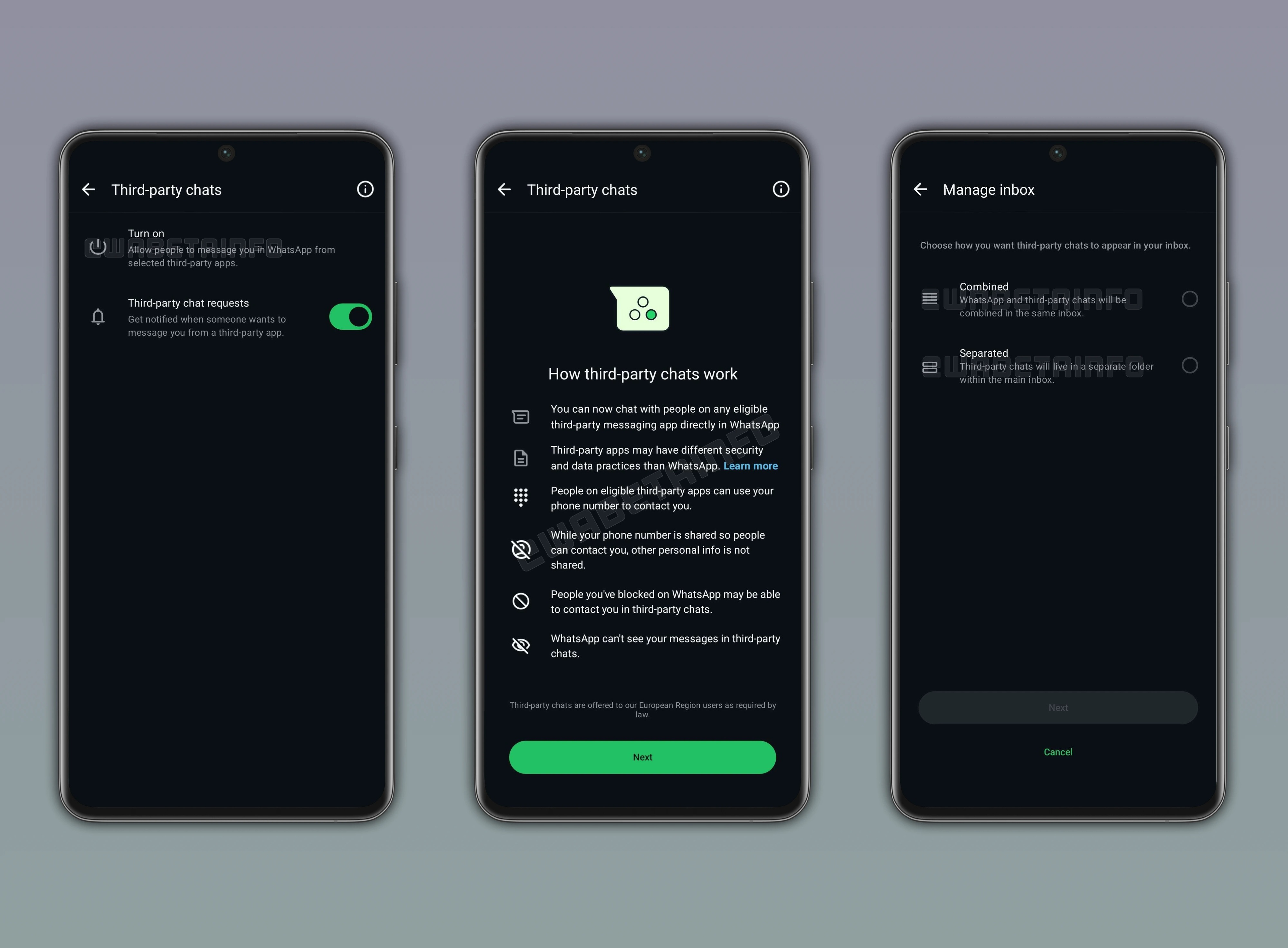 O portal WABetaInfo avança que, recentemente, a app de mensagens instantâneas ganhou uma nova atualização através do programa Google Play Beta, passando para a versão 2.25.33.8. Nela inclui-se para uma nova funcionalidade que permite integrar conversas de outras aplicações, de modo a cumprir as obrigações do DMA, e que, entretanto, está disponível para alguns utilizadores europeus que são “beta testers”.