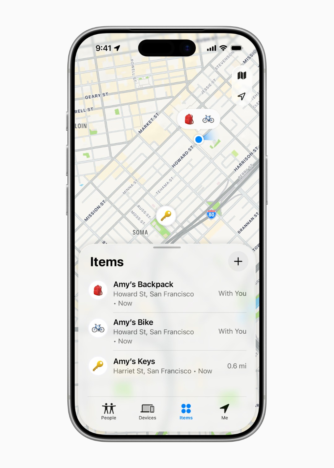 Pela primeira vez, a funcionalidade Precision Finding está disponível no Apple Watch, permitindo aos utilizadores de modelos como o Apple Watch Series 9 ou mais recente, assim como Apple Watch Ultra 2 ou posterior, de localizar as AirTags através de feedback háptico, visual e sonoro no pulso. A novA AirTag mantém a integração com Share Item Location, que permite partilhar temporariamente a localização de um objeto perdido com companhias aéreas.