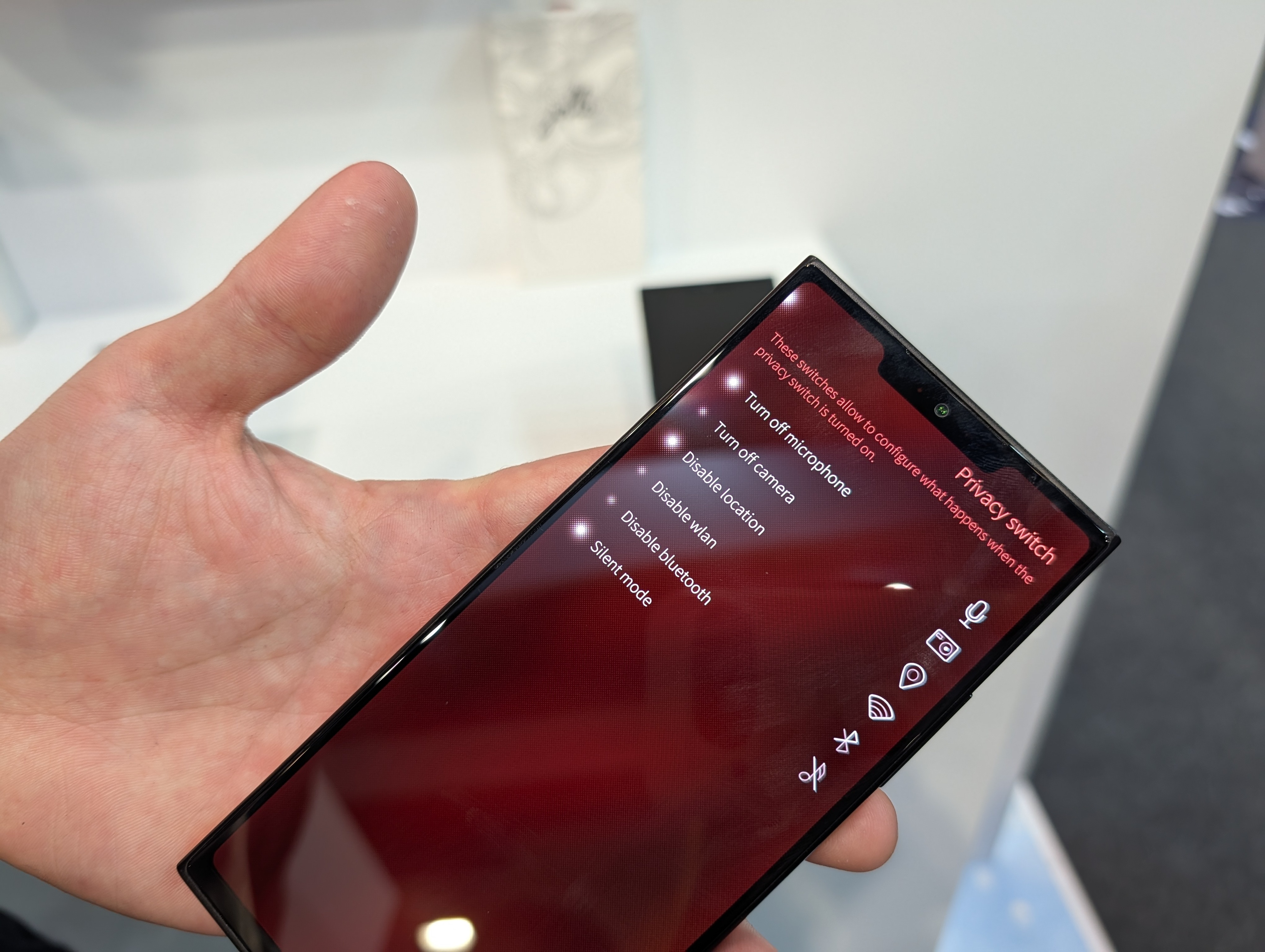 A empresa garante que o seu sistema operativo não envia dados em background, não tem analíticas escondidas e não precisa de criar uma conta para ser usado. Tem também um botão físico para privacidade que permite desligar os microfones e a câmara, ou outros sensores.