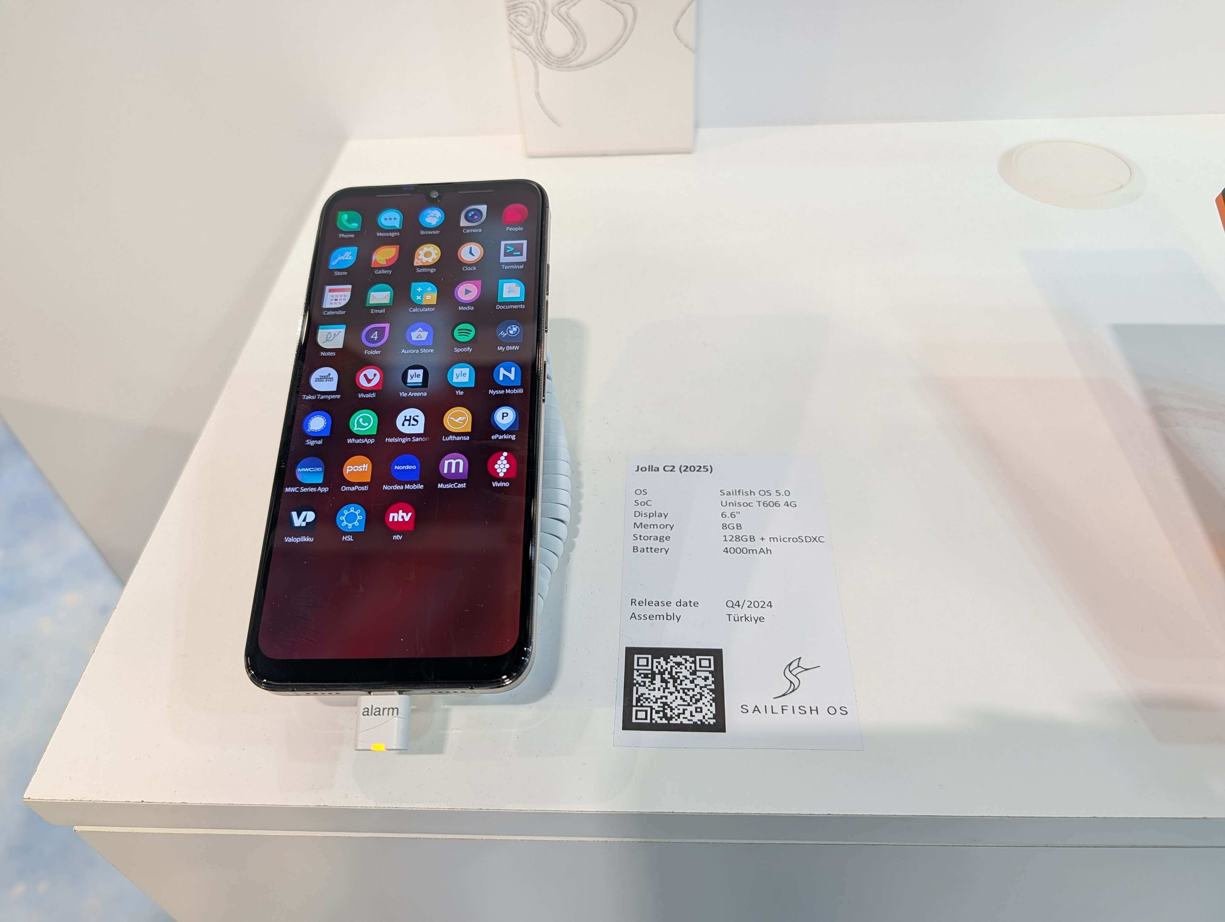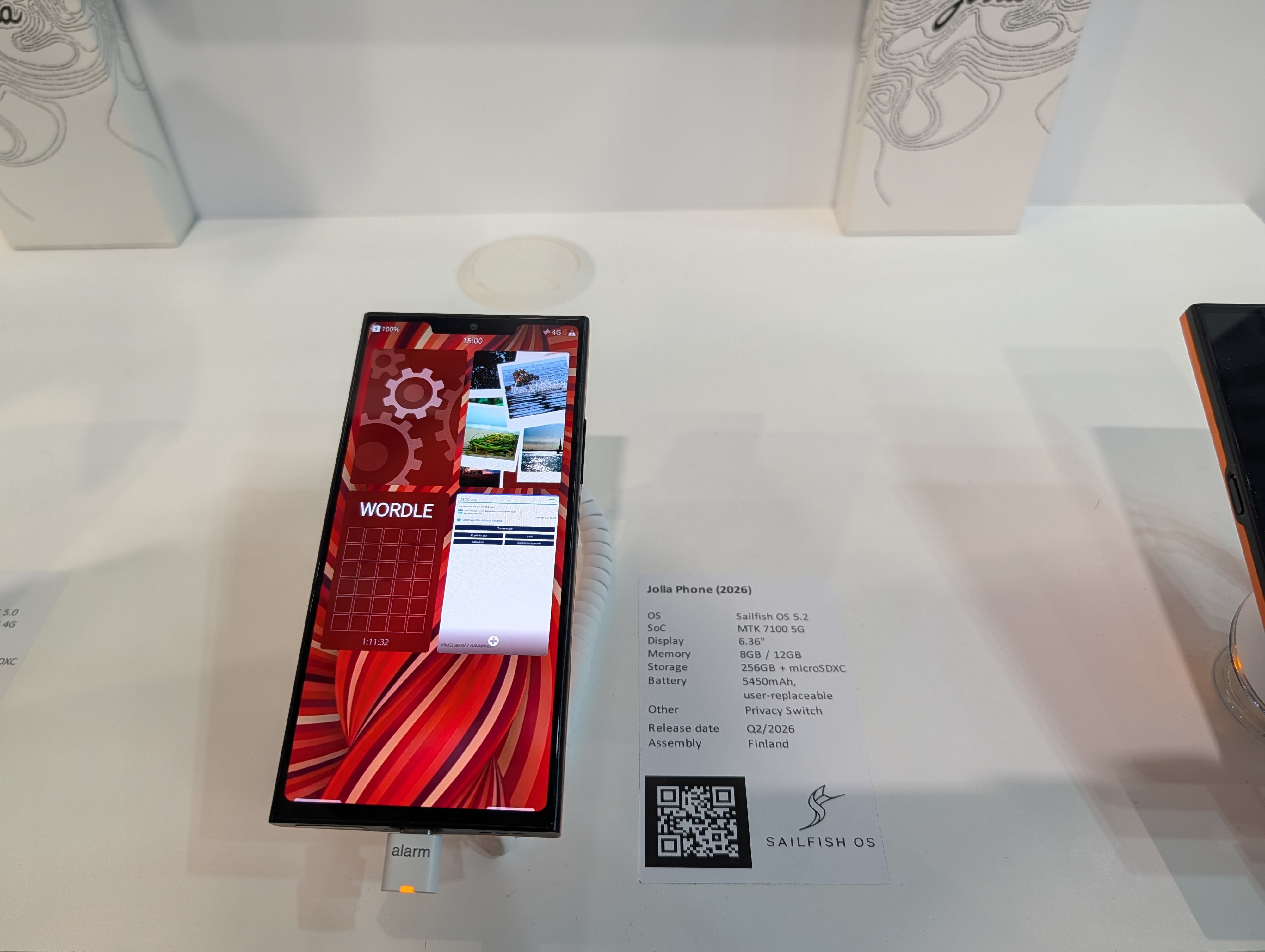 O novo smartphone já tinha sido anunciado mas o MWC26 foi o primeiro grande evento onde o Jolla Phone esteve em exposição, embora ainda em formato "beta", com algumas arestas para limar, como verificou o TEK Notícias. Aliás, durante o tempo em que estivemos no pequeno stand, integrado no pavilhão da Finlândia, o próprio telefone foi trocado, com a indicação de que "estamos a fazer atualizações permanentes".