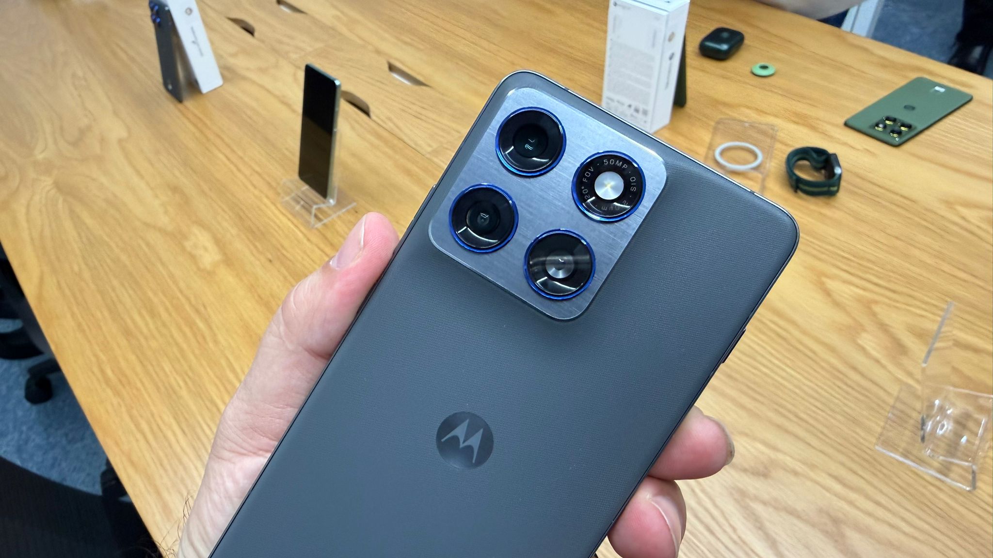 Além das cores estéticas dos equipamentos, também a qualidade de captura de vídeo e fotografias foi validado pela Pantone, no que diz respeito às cores. O motor da câmara permite captar imagens profissionais, com melhoramentos através do Moto AI. Pode gravar vídeo 4K com estabilizador, apresentando ultra grande angular na segunda câmara e um sensor 3-1 para jogar com a luz. Como referido, o trio de câmaras tem 50 MP, um dos pontos de destaque, segundo a Motorola.