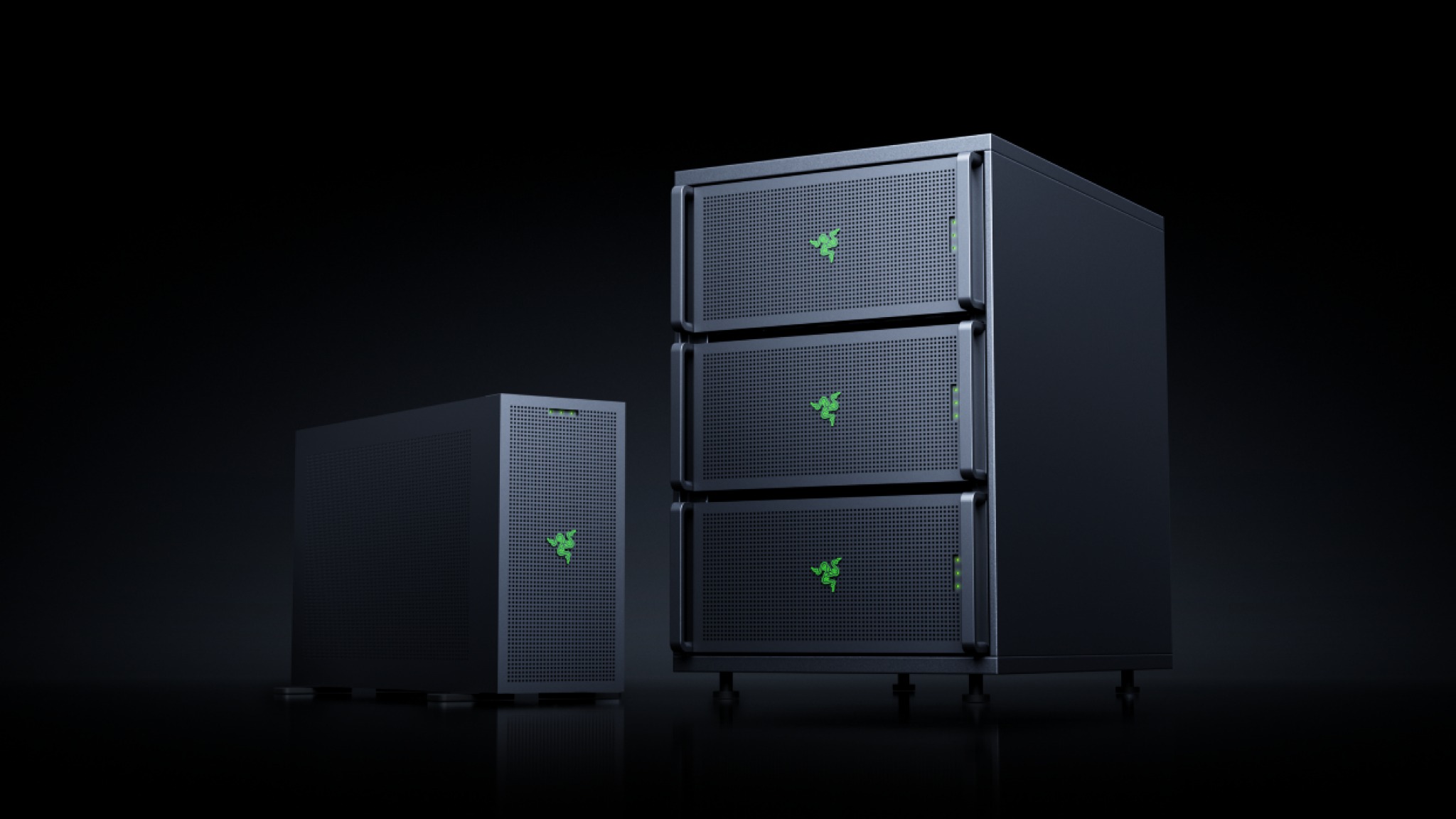 A pensar em programadores, a Razer revelou o Forge AI Dev Workstation, que suporta múltiplas placas NVIDIA RTX PRO 6000 Blackwell Series, processadores AMD Threadripper PRO ou Intel Xeon W, oito módulos de memória DDR5 e portas Ethernet duplas de 10 Gigabit. Integra-se com o Razer AIKit, plataforma open-source para desenvolvimento de LLMs locais com configuração automática de GPUs.