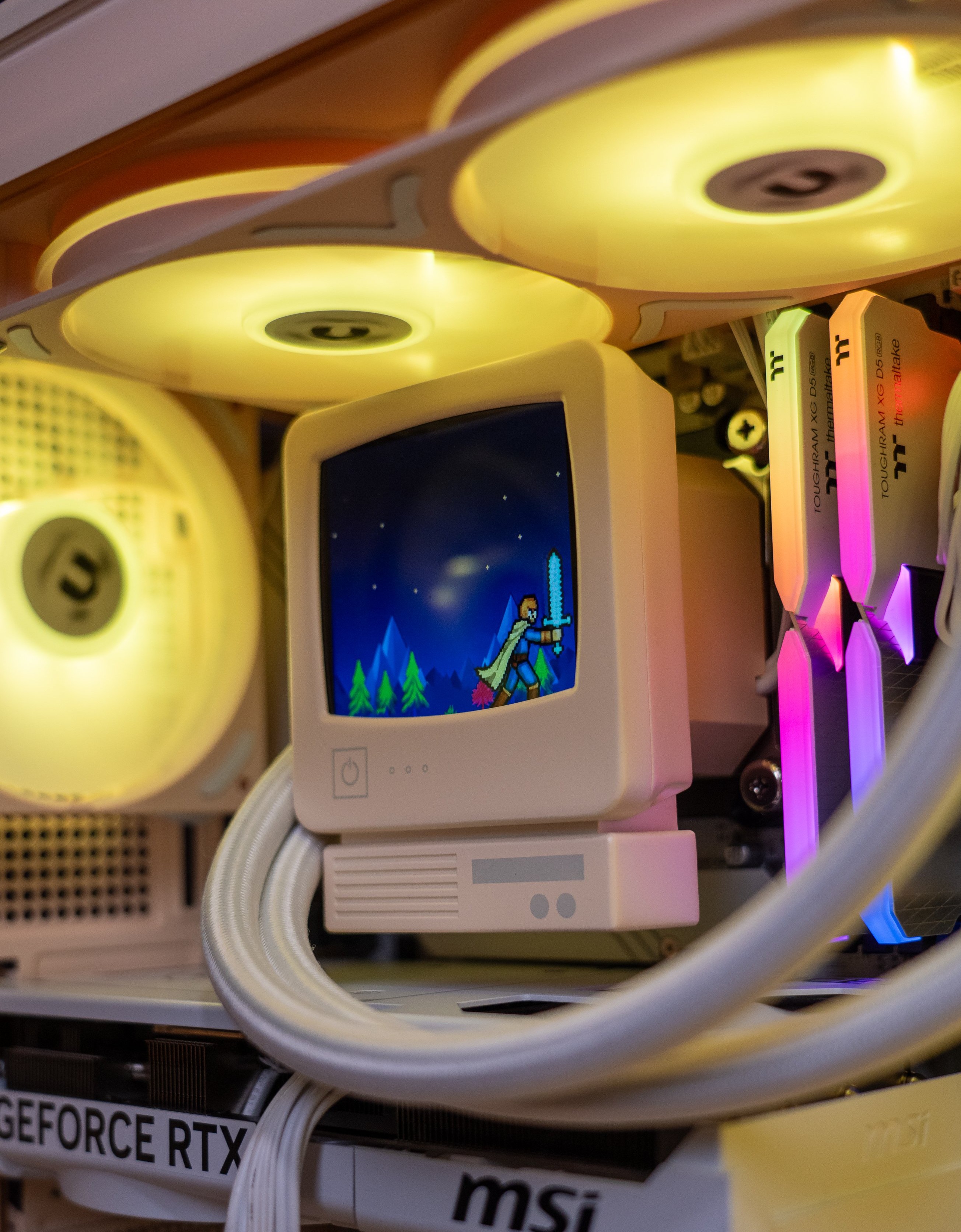 Juntamente com as caixas, a Thermaltake apresentou o sistema de refrigeração líquida Retro Ultra ARGB Sync AIO, disponível em versões de 240 mm e 360 mm. O destaque desta solução é o bloco da bomba, que incorpora um ecrã LCD de 3,6 polegadas personalizado, para se assemelhar a um monitor CRT em miniatura, completo com a estética curva característica dos monitores de tubo catódico da época. Através do software TT RGB Plus 3.0, os utilizadores podem personalizar o ecrã para apresentar animações, protetores de ecrã temáticos ou leituras de temperatura em tempo real.