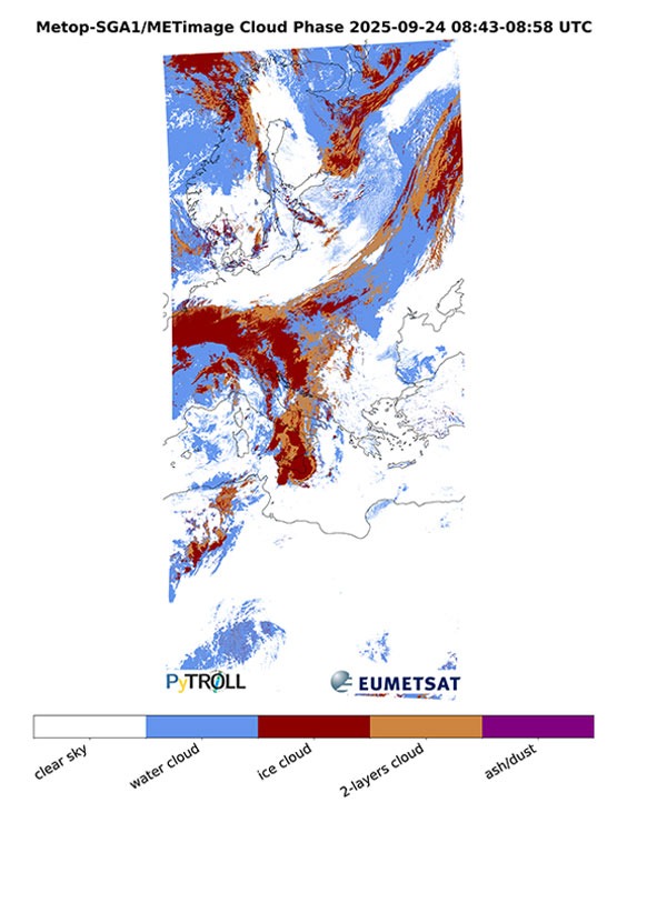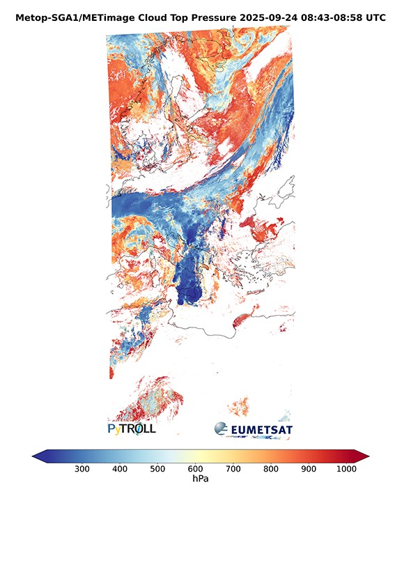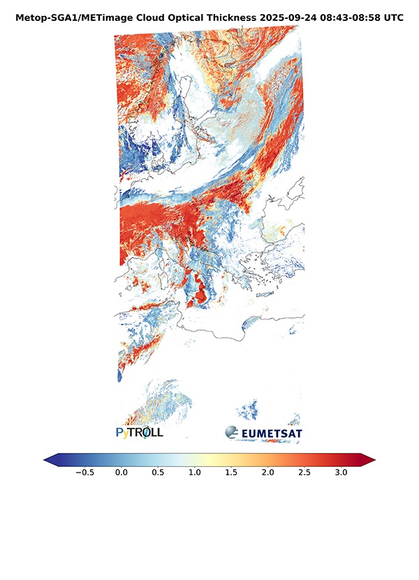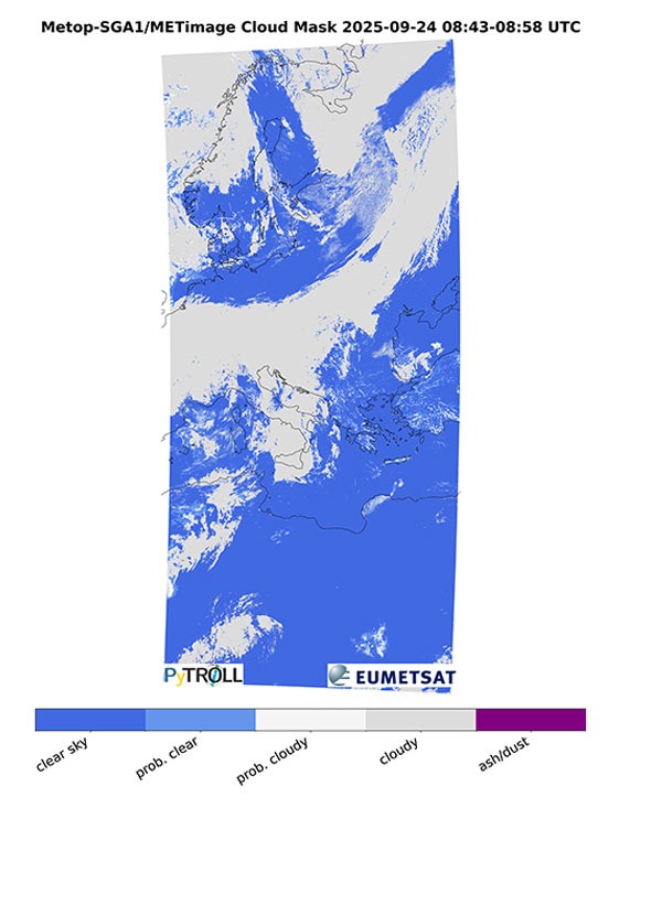 A primeira imagem do instrumento METimage foi captada a 24 de setembro e, nela, é possível observar a Europa e o norte de África, bem como formações complexas de nuvens associadas a uma frente fria e tempestades em formação sobre o mar Adriático e Mediterrâneo Central.