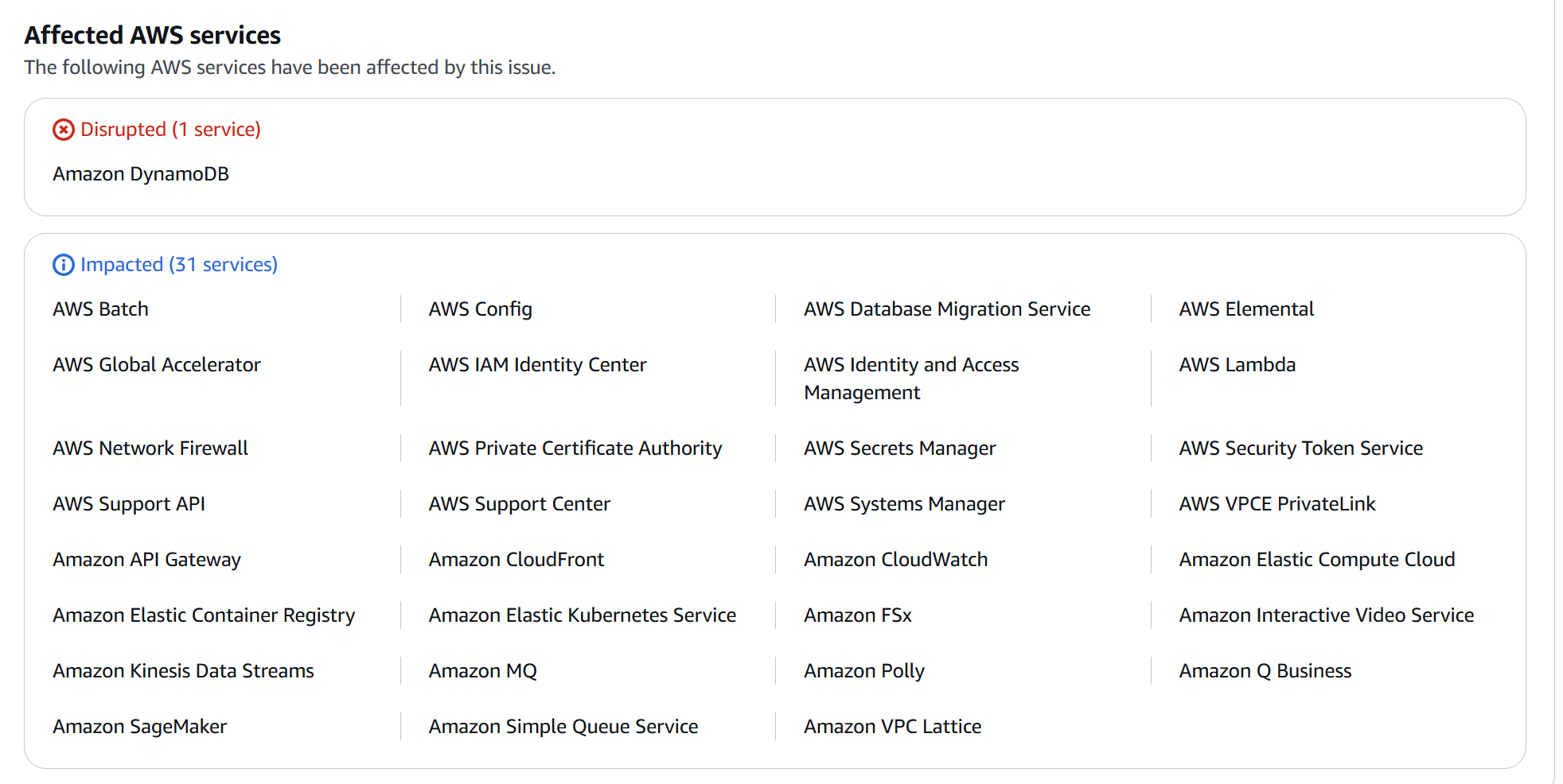 Se estiver a tentar aceder a jogos, redes sociais e serviços que estejam alojados na cloud da Amazon Web Services, poderá ter problemas de conexão. A AWS já admitiu que a sua infraestrutura está com falhas. Nas atualizações informativas, a empresa confirma os erros no endpoint DynamoDB, na região US-EAST-1 (Virgínia do Norte), que afetam os serviços alojados na plataforma de cloud .”Durante este período, os clientes podem não conseguir criar ou atualizar os casos de suporte”, salientando que os seus engenheiros já estão em cima do acontecimento para mitigar os problemas, assim como compreender os motivos.