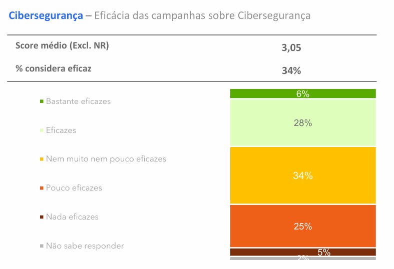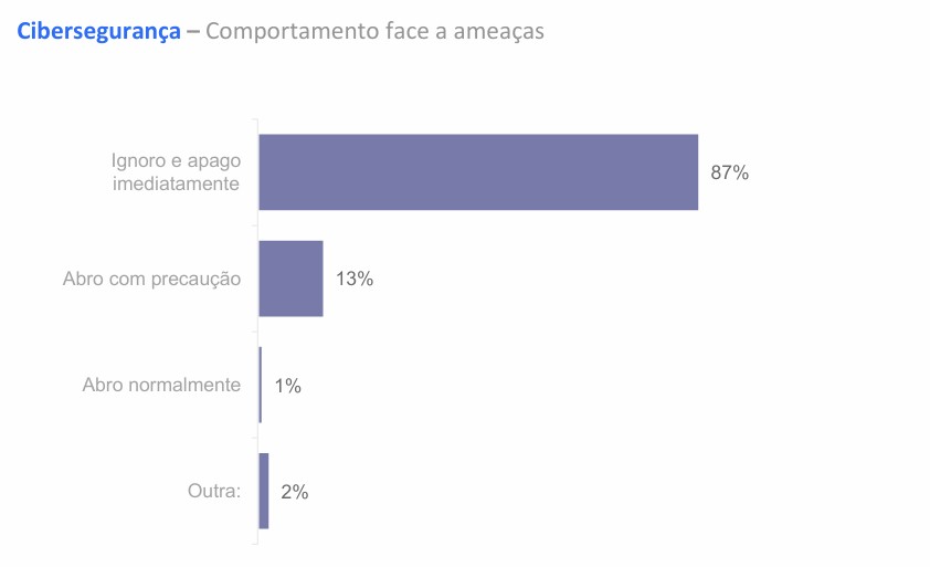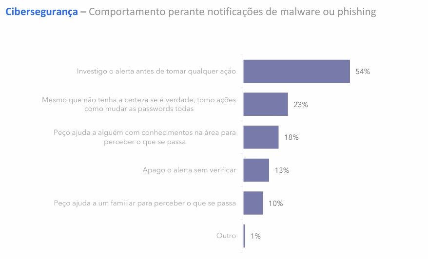 Por outro lado, na sequência de notificações, só 54% afirmam investigar alertas e malware ou phishing antes de tomarem qualquer medida de prevenção. Além disso, 64% têm dúvidas sobre a eficácia das campanhas de cibersegurança.