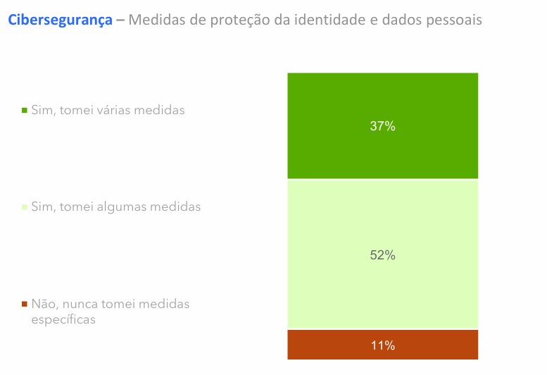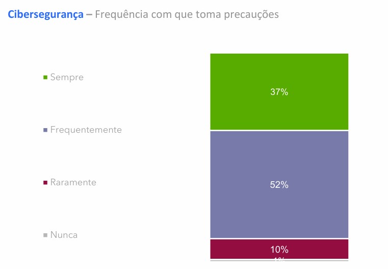 Embora 52% dos inquiridos afirmem tomar frequentemente medidas de precaução para proteger os seus dados pessoais enquanto navegam online, como usar passwords-fortes ou evitar clicar em links suspeitos, apenas 37% indicam que as colocam sempre em prática.