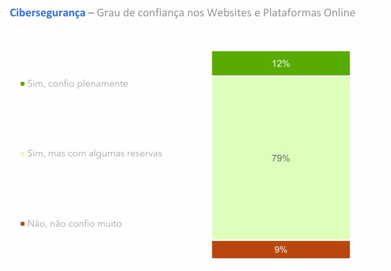 A maioria dos participantes inquiridos confia nos websites e plataformas com que interage, com 72% a sentirem-se seguros, por exemplo, ao realizarem transações financeiras ou ao partilharem informação pessoal na Internet.