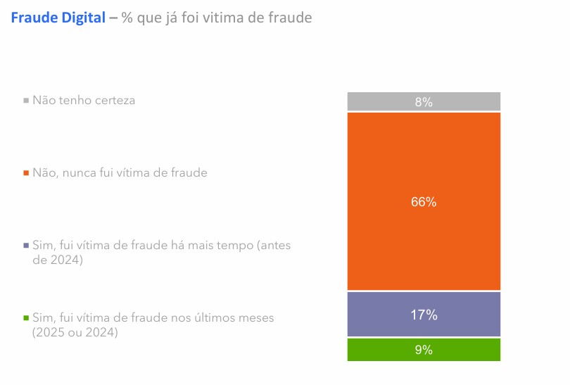 Dados partilhados pelo Observador Cetelem revelam que um em cada quatro portugueses já foi vítima de fraude digital. Deste conjunto, 17% dos inquiridos caíram em esquemas de fraude antes de 2024 e 9% afirmam que foram vítimas no ano passado ou ainda em 2025.