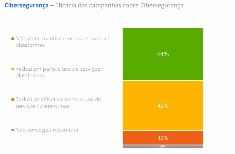 No entanto, 52% consideram que o risco de fraude ou de roubo de identidade é elevado quando fazem compras online ou usam serviços online. 42% reduziram em parte o uso destes serviços e plataformas, mas 44% mantiveram-no.