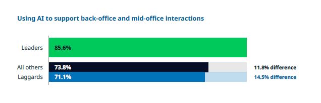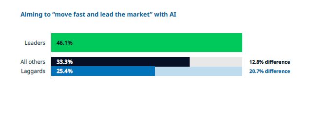 Estas organizações líderes encaram a IA como um motor central de crescimento, sublinha a pesquisa. Reestruturam as suas estratégias para tirar partido desta oportunidade e estão a reconstruir as aplicações centrais das suas organizações para integrar IA.