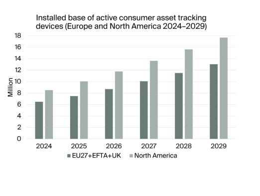 Na Europa e na América do Norte existiam no final do ano passado 15 milhões de dispositivos de localização ativos em bens de consumo, num mercado que valia 2 mil milhões de euros. Até 2029, o número deve aumentar para 30,7 milhões e o valor do mercado para 4,1 mil milhões, com um crescimento anual médio de 15,4%, de acordo com previsões da Berger Insight.