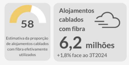 Estima-se que cerca de 74% dos alojamentos e estabelecimentos cablados tenham sido efetivamente utilizados para prestar serviços a clientes residenciais e não residenciais.