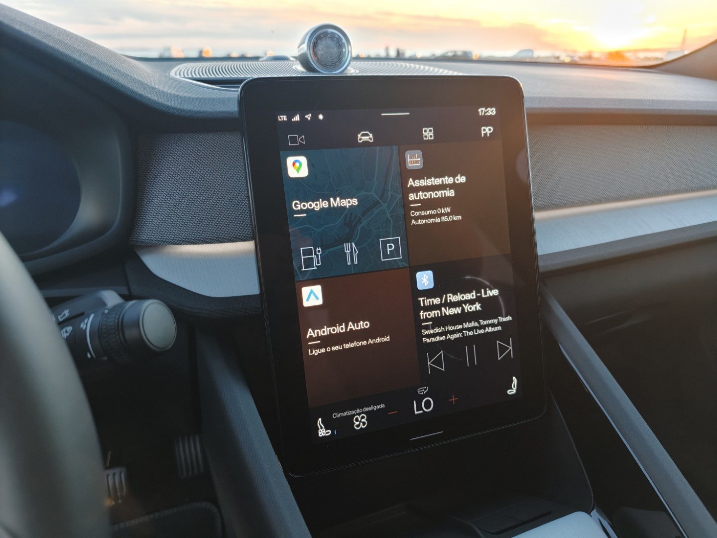 A mala tem 405 litros, um valor bastante generoso para um veículo neste tipo de formato, existindo uma pequena bagageira à frente, bastante limitada em termos de volume (apenas 41 litros), mas ainda assim suficiente para arrumar os cabos de carregamento. No interior predomina a simplicidade do desenho e dos elementos dispostos. Temos um painel de instrumentos que, embora digital com 12,3 polegadas, tem um formato ainda tradicional, e um ecrã central em formato de tablet, com 11,2 polegadas disposto numa posição vertical. Este recorre ao sistema operativo Android Automotive OS, tendo uma interface personalizada pela Polestar, e várias aplicações e serviços Google integrados.