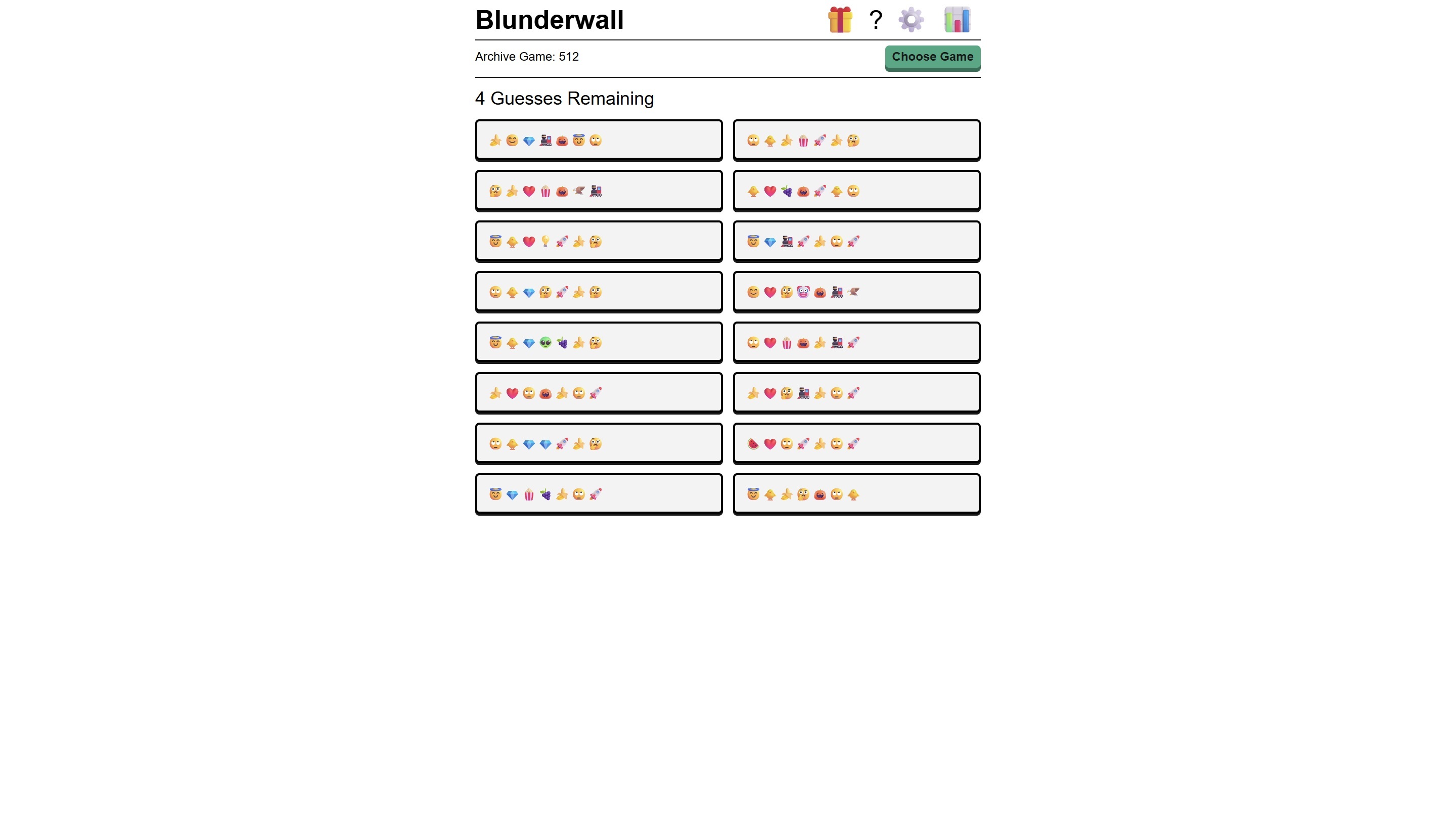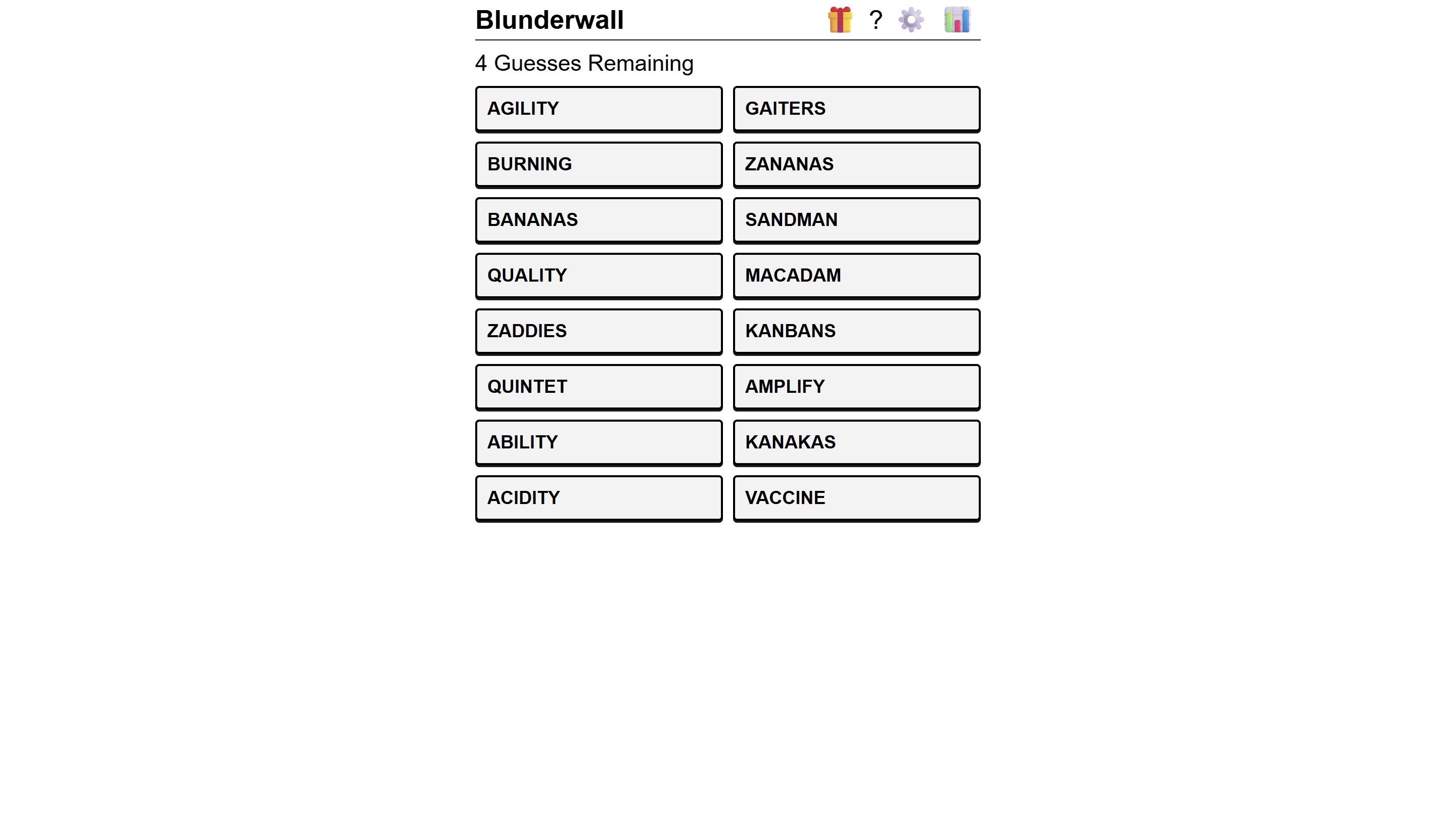 Em cada um dos desafios de Blunderwall, os jogadores encontram um conjunto de 16 palavras. O objetivo passa por descobrir qual delas é a palavra secreta, mas com apenas quatro tentativas disponíveis para fazê-lo.
