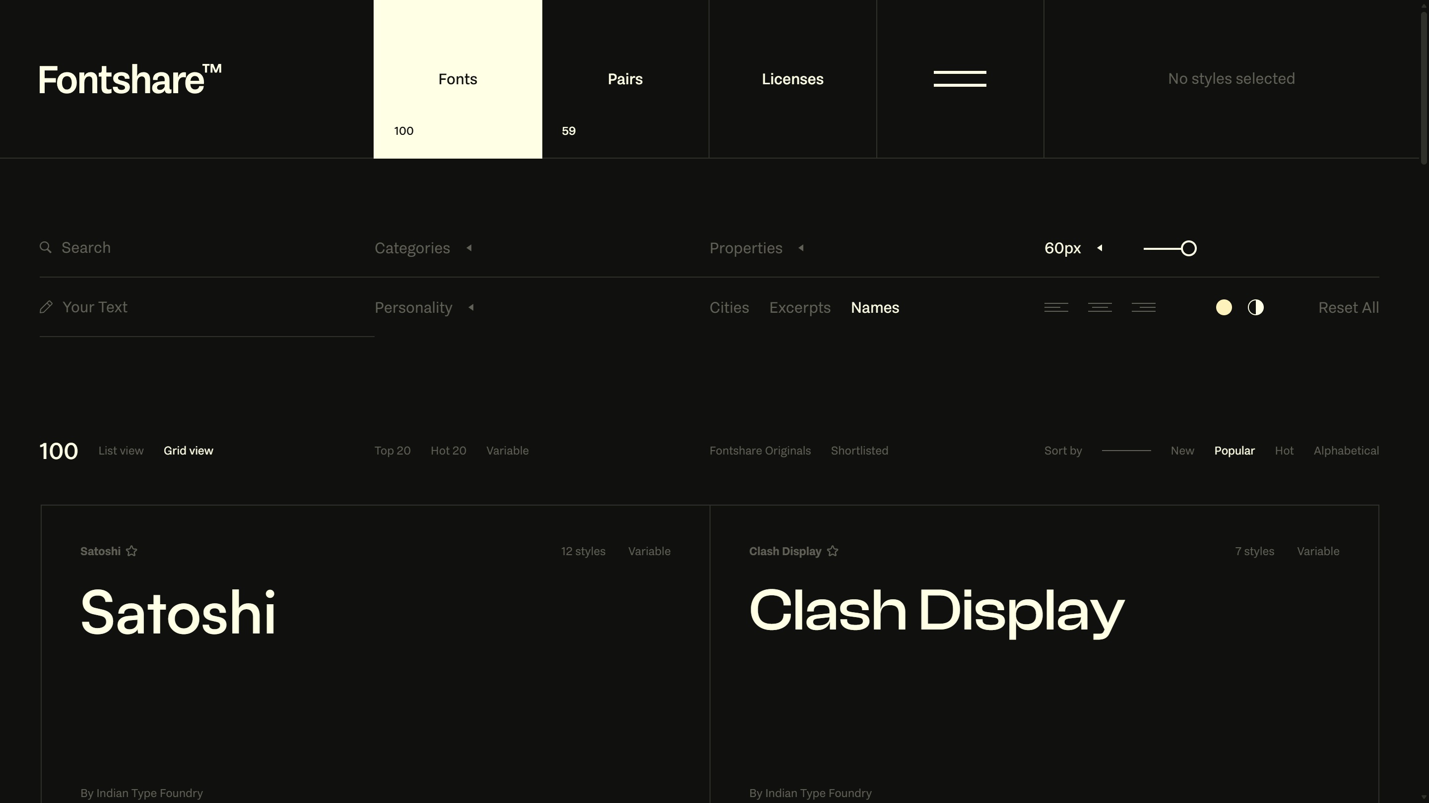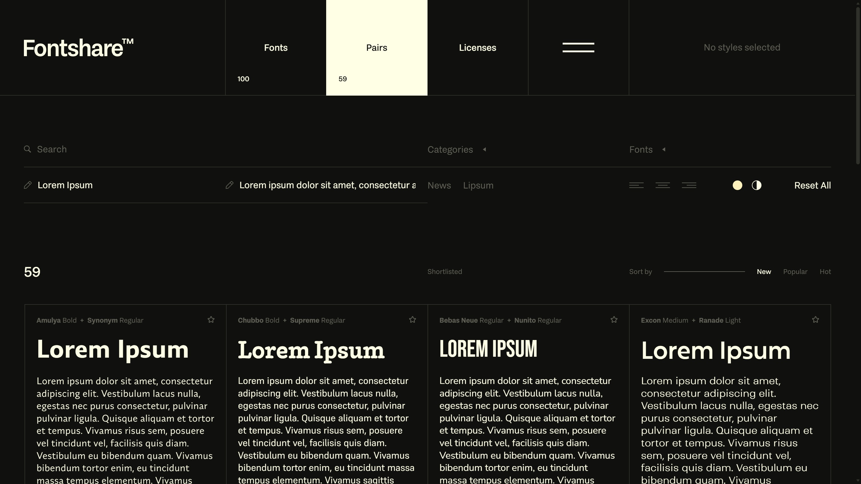 A Fontshare também lhe dá a possibilidade de experimentar os tipos de letra antes de descarregar, incluindo uma secção concebida para quem quer emparelhar diferentes opções.