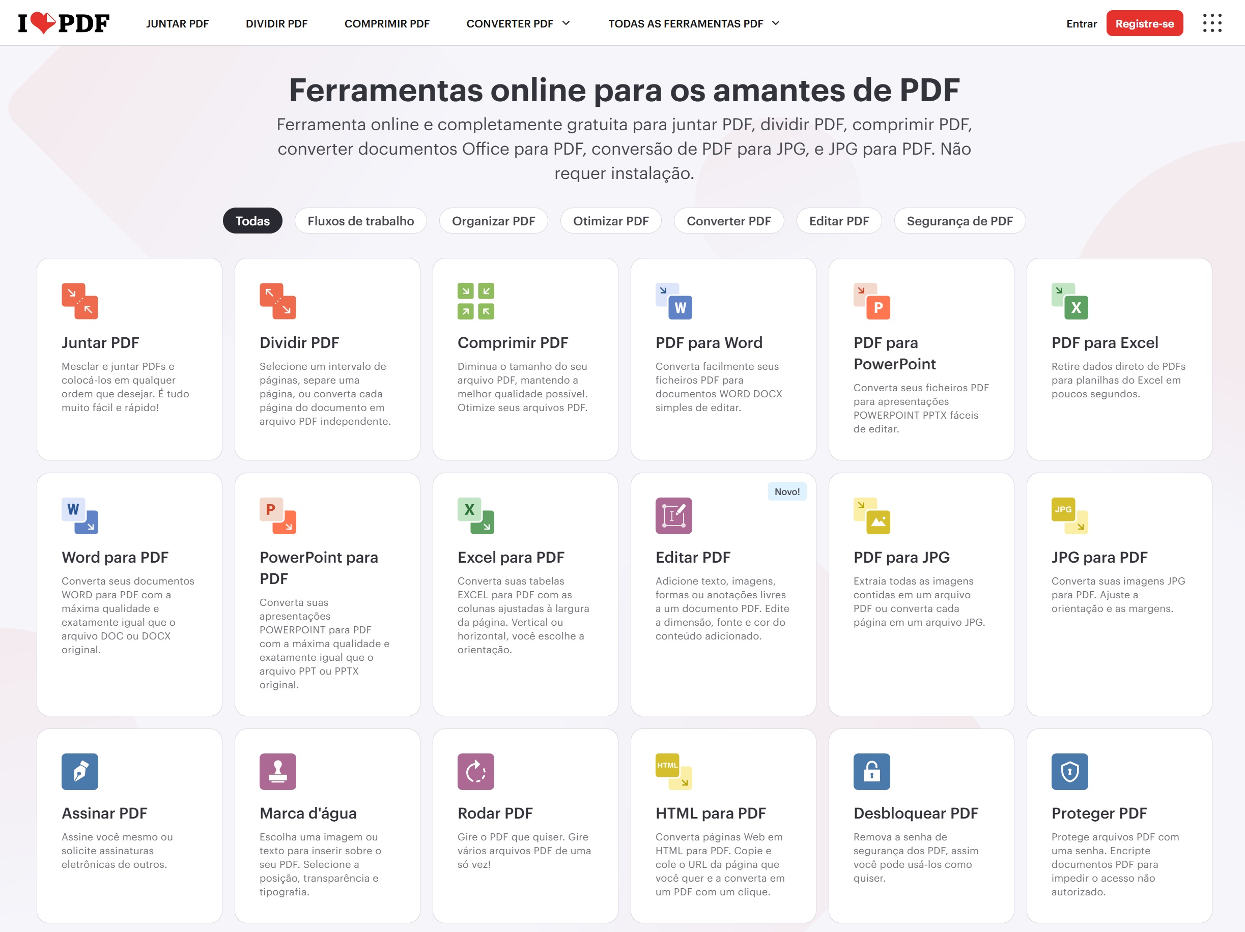 Uma das grandes vantagens desta plataforma é a enorme diversidade de funcionalidades disponíveis num único local, organizadas de forma visual e intuitiva. Os utilizadores podem unir vários documentos num só, dividir um ficheiro extenso em várias partes independentes ou comprimir o tamanho de um PDF para facilitar o seu envio por correio eletrónico, mantendo sempre a máxima qualidade possível.