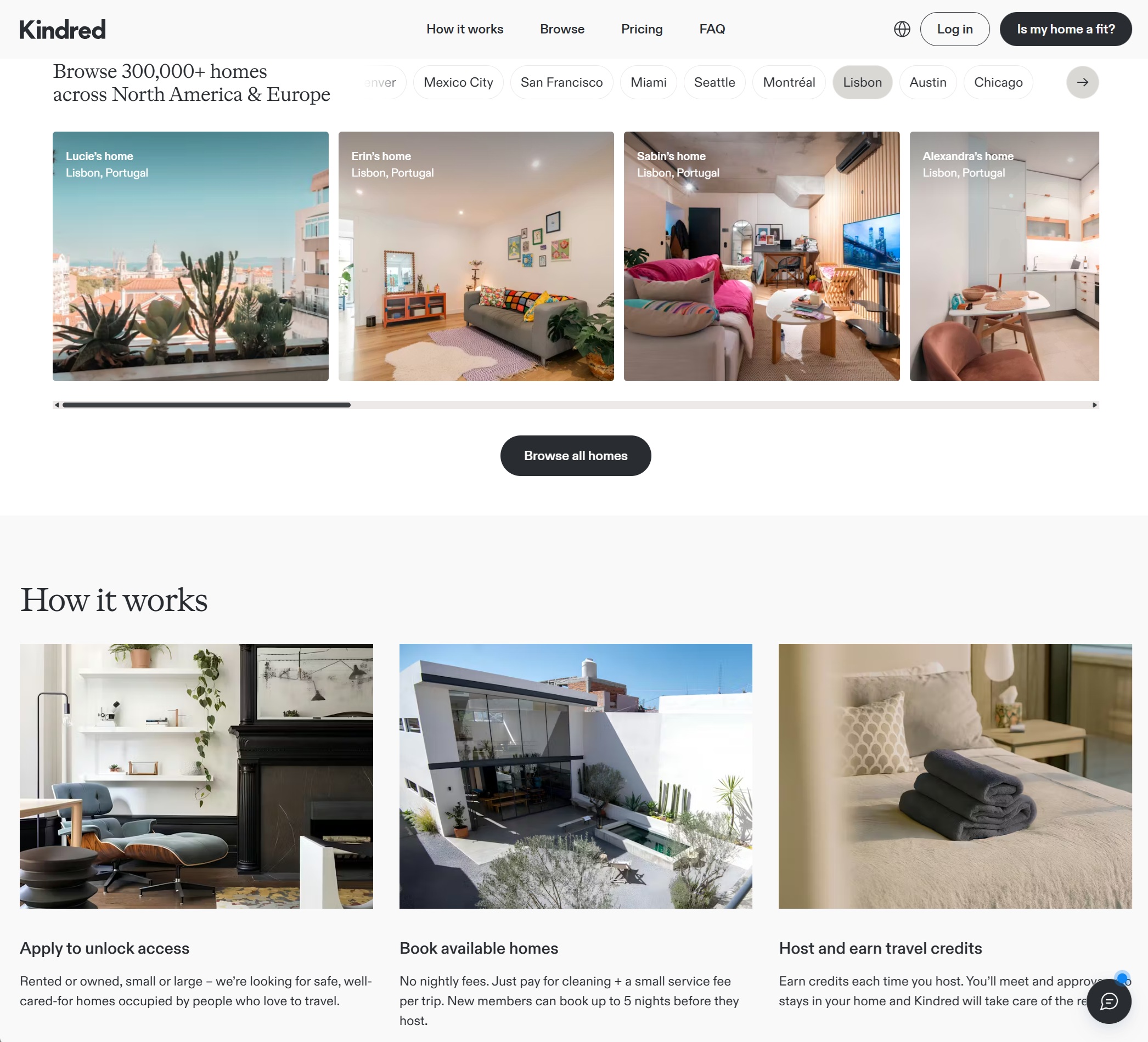Portugal tornou-se um dos destinos prediletos para os turistas americanos, mas a massificação dos alugueres de curta duração, como o Booking e Airbnb tem inflacionado os preços e descaracterizado a experiência de quem procura autenticidade. É neste cenário que a Kindred se tem destacado como sendo uma plataforma de "home swapping" real, exclusiva para membros.