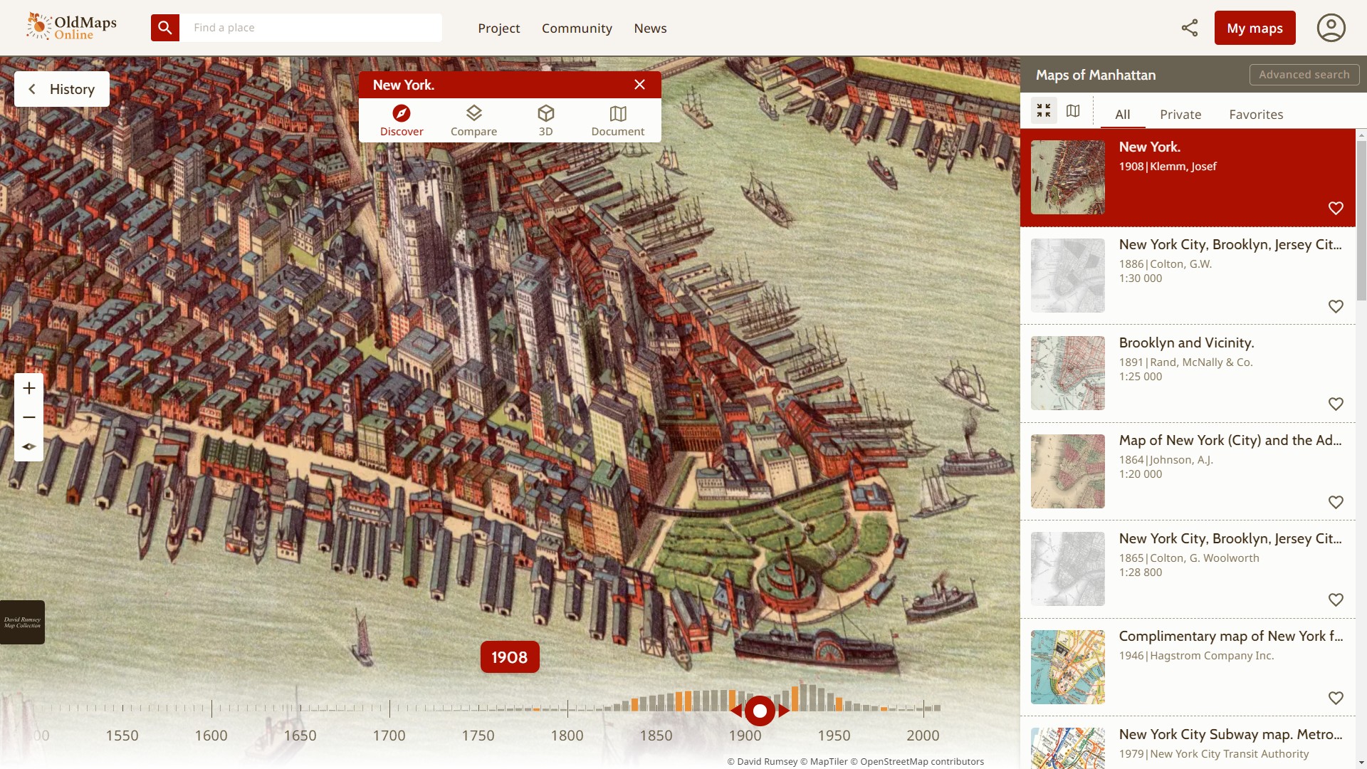 Criado por uma equipa dedicada de cartógrafos, historiadores e voluntários, o OldMapsOnline é um motor de busca que agrega mapas históricos de alta resolução de bibliotecas e instituições de todo o mundo. A plataforma já indexou mais de 500 mil mapas digitalizados, com parcerias da British Library, o David Rumsey Map Center da Universidade de Stanford e outros, transformando-se no maior repositório acessível de cartografia histórica na Internet.