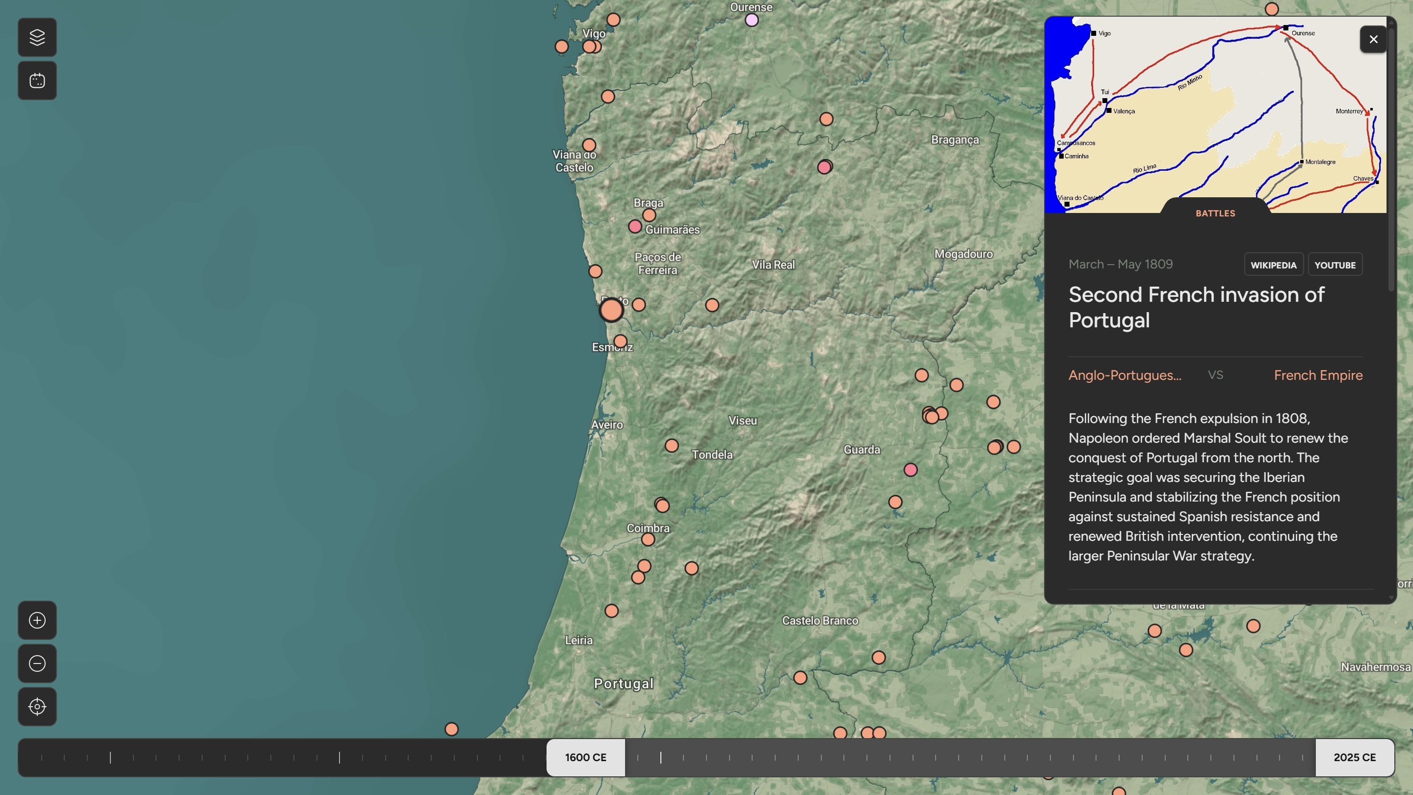 Nesta plataforma é possível explorar o mundo ao longo do tempo através de uma linha cronológica ajustável, que mostra como os acontecimentos históricos sucederam por diferentes séculos.