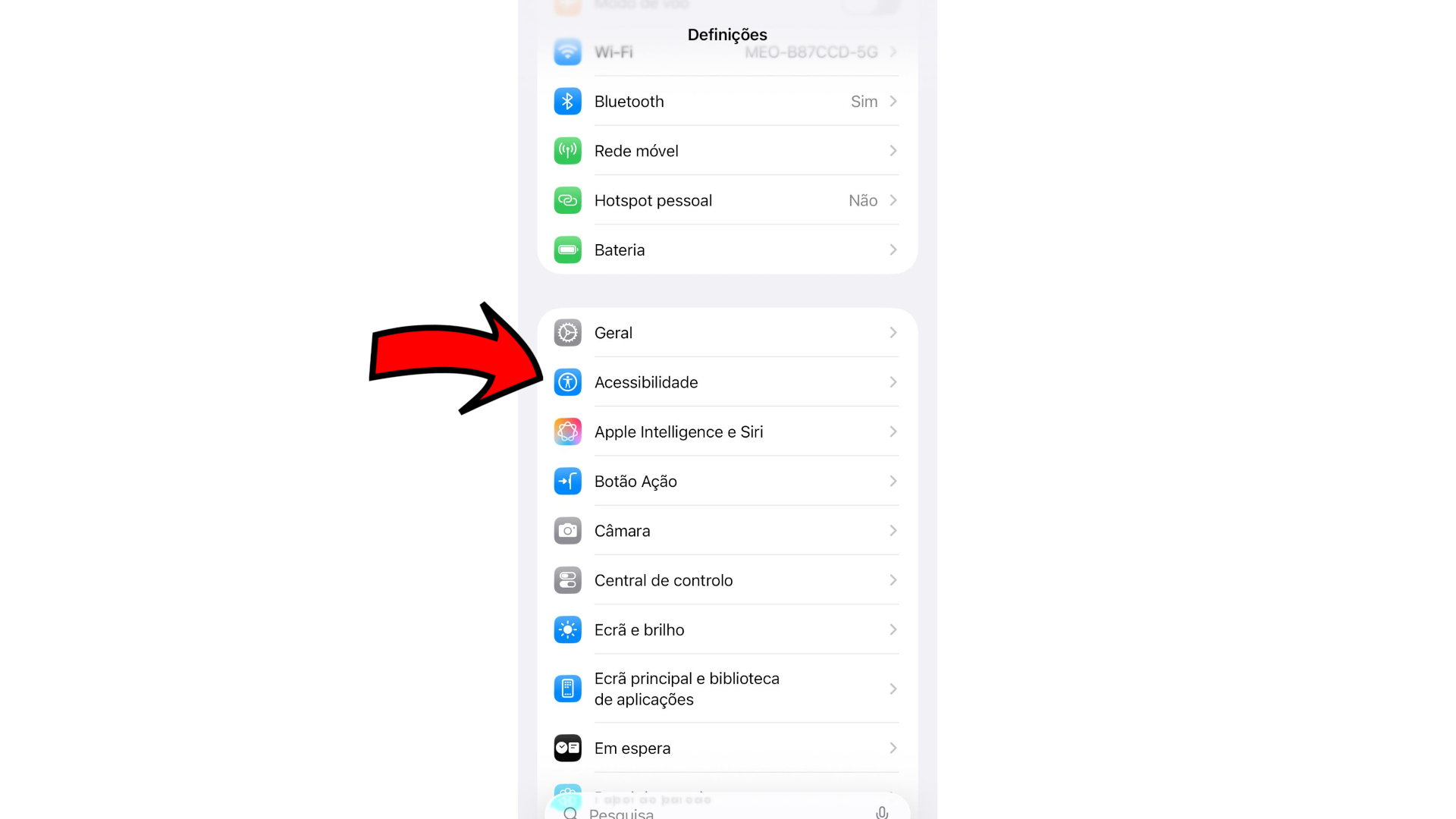 2 - Escolha a opção Acessibilidade.