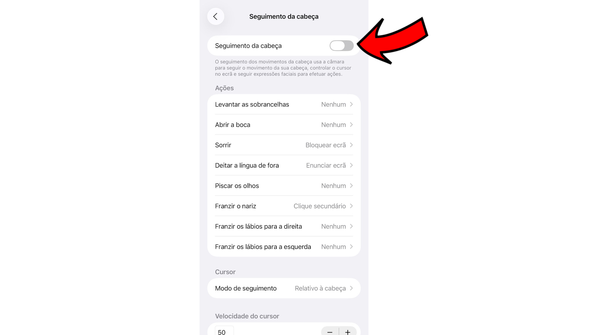 4 - Em cima ligue a opção Seguimento da cabeça.