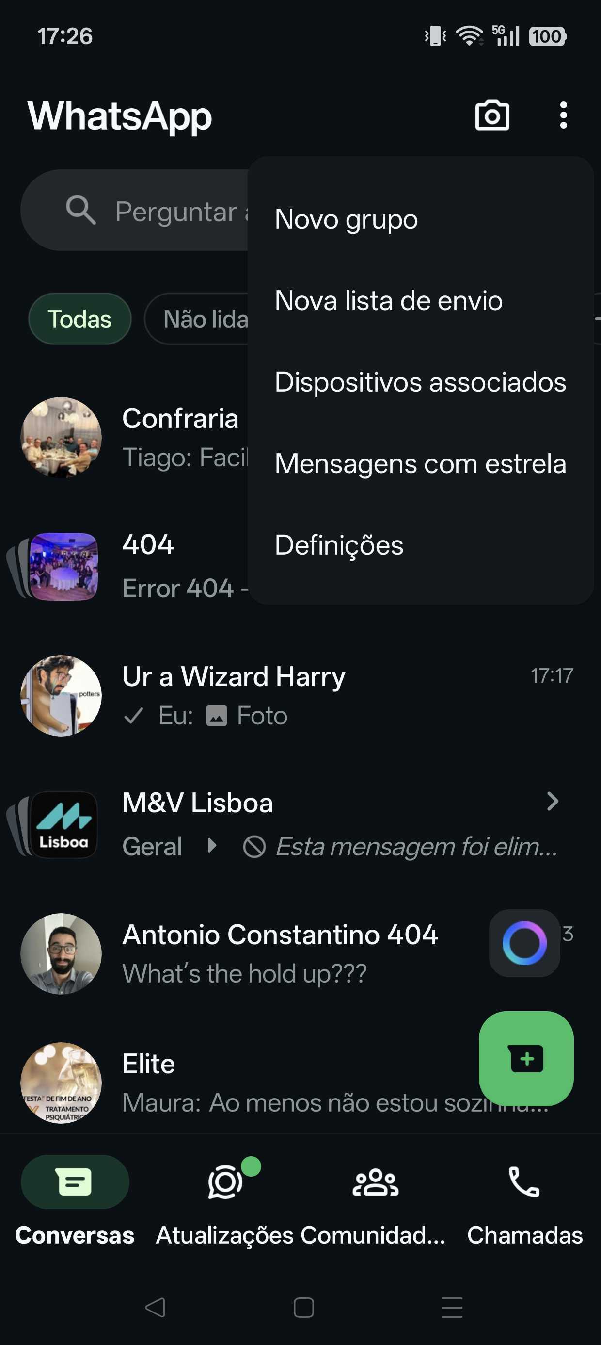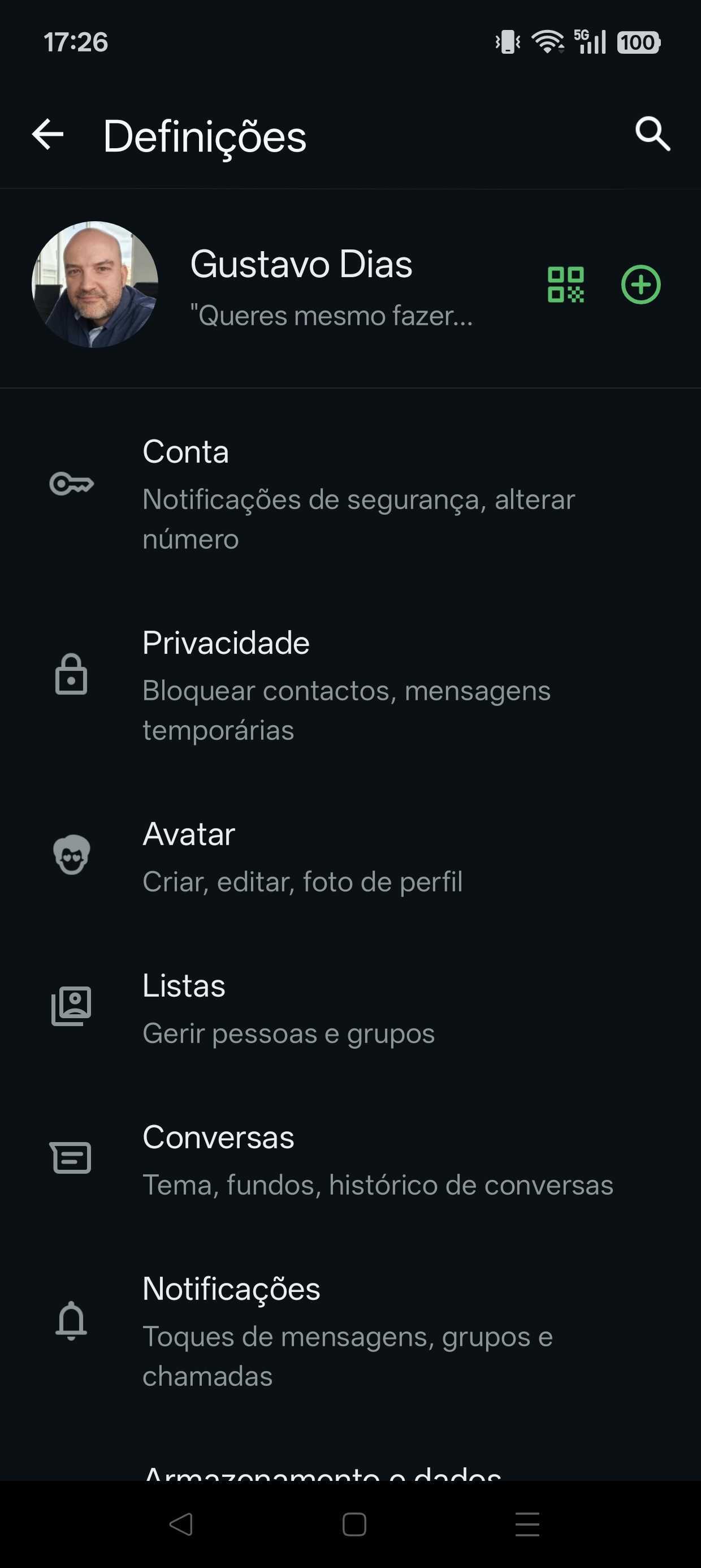 - Dentro do ecrã das “Definições”, clique na opção de “Conversas”.