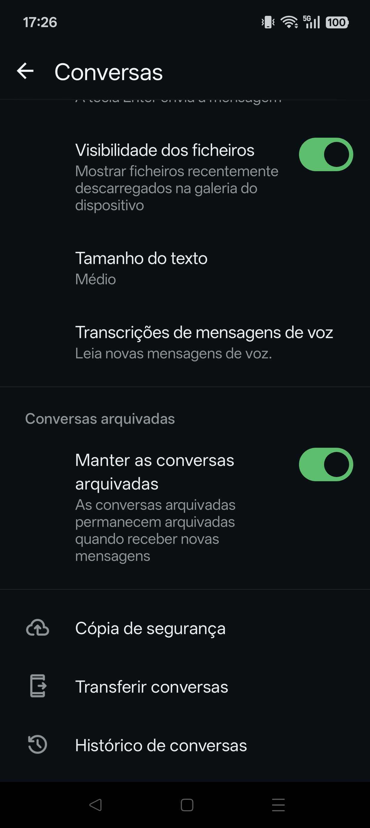 - No ecrã das “Conversas”, vá até ao final da página e clique em “Cópia de segurança”.