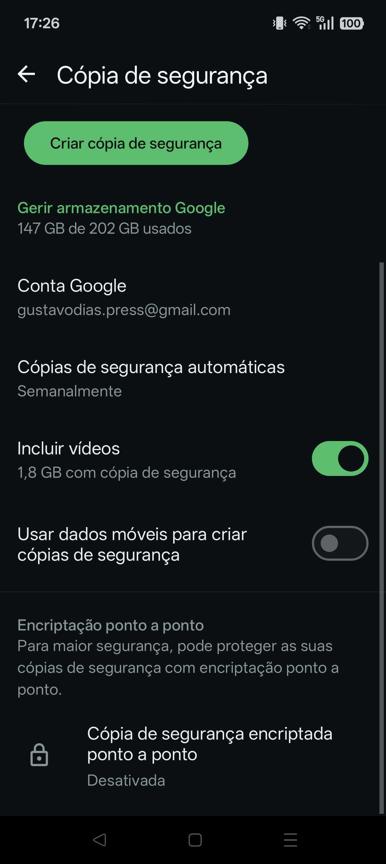 - Neste ecrã, vá até ao final da página e clique em “Cópia de segurança encriptada ponto a ponto”.