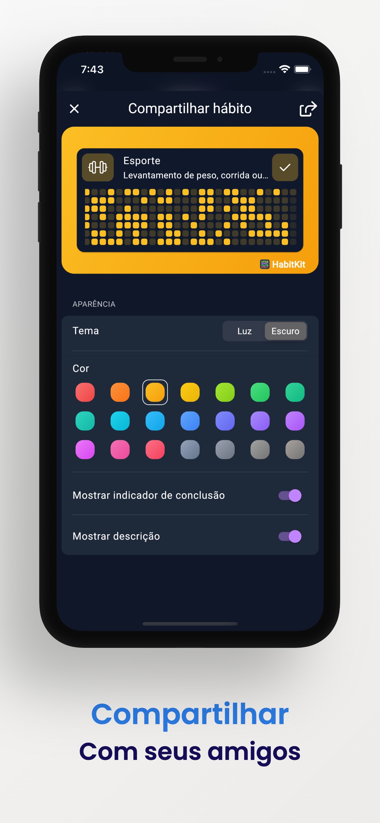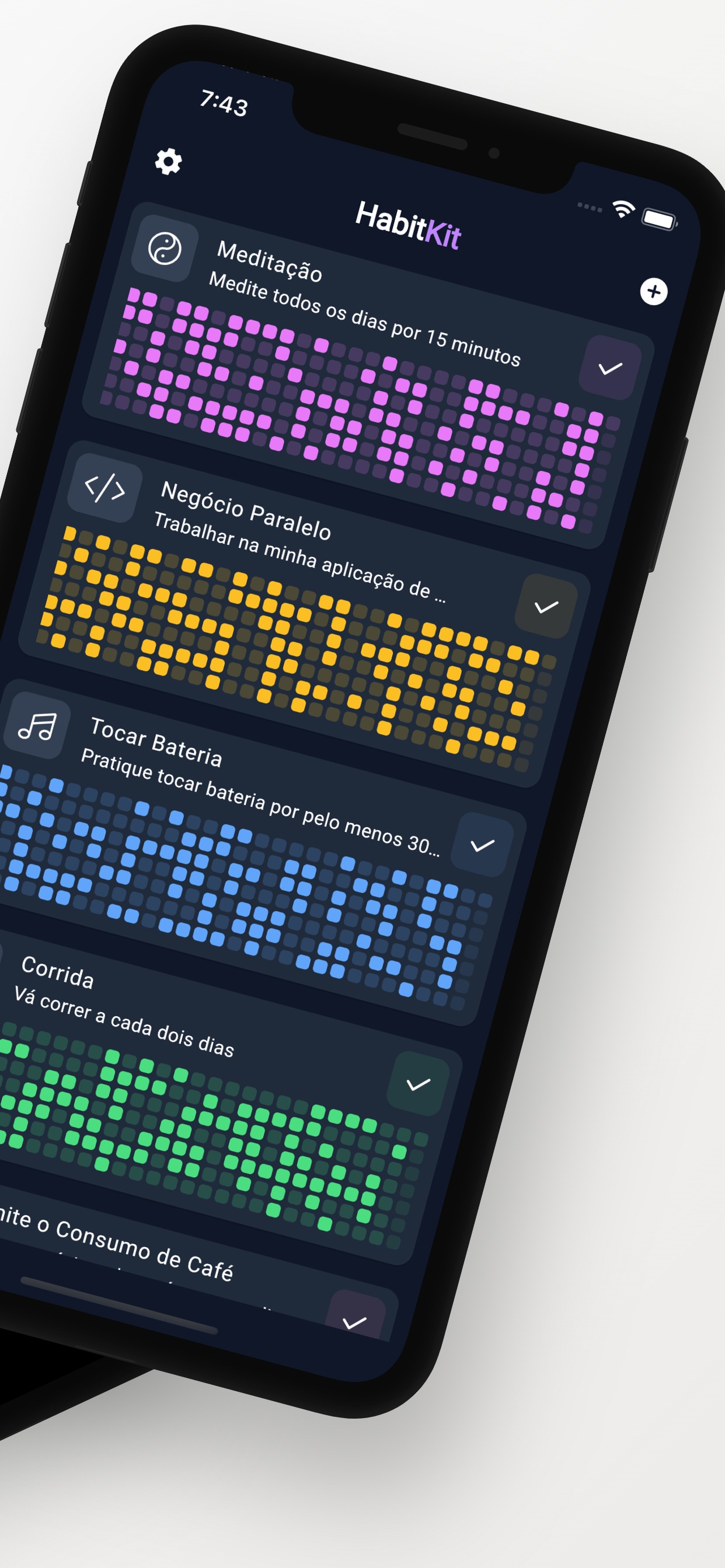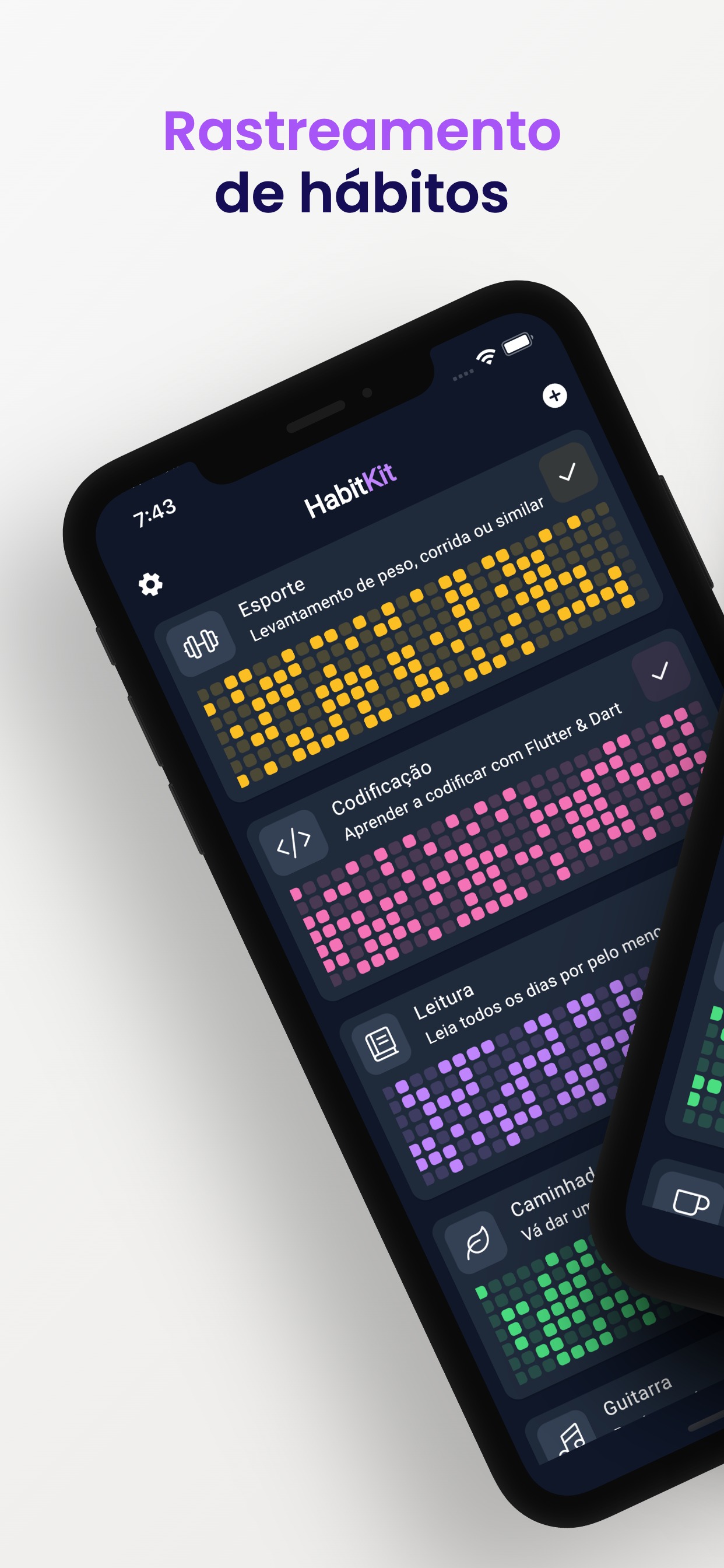 A HabitKit está disponível para Android, a partir da Play Store, e para iOS, através da App Store.