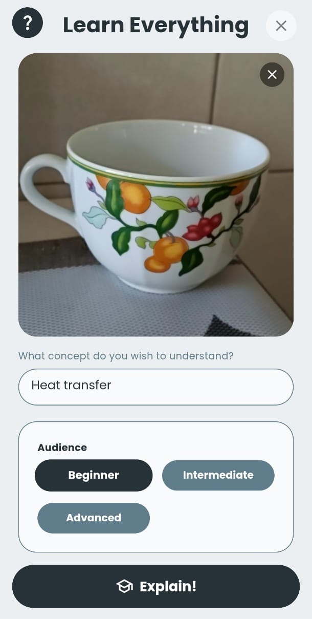 A primeira das experiências que acaba de chegar à app do Google Arts & Culture, chamada Learn Everything, permite gerar explicações de temas complexos, da física à biologia, a partir de fotografias captadas com o smartphone. Através dela, uma fotografia de uma chávena de café pode, por exemplo, tornar-se num ponto de partida para descobrir mais sobre bioquímica.