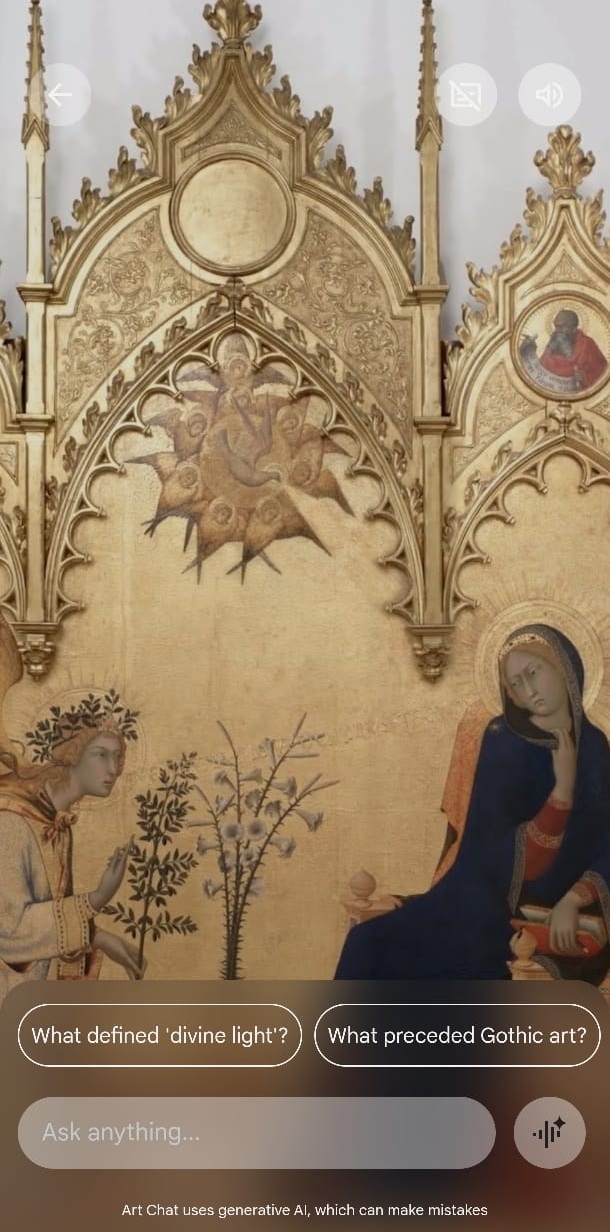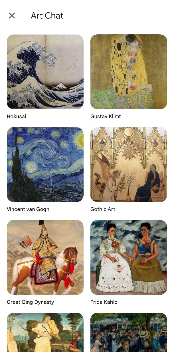 Para os entusiastas do mundo da arte, a experiência Art Chat permite “conversar” em tempo real com uma variedade de obras icónicas. À medida que vê um vídeo explicativo sobre o artista ou movimento artístico escolhido, pode fazer perguntas para ajudar a esclarecer detalhes ou contextualizar elementos específicos.