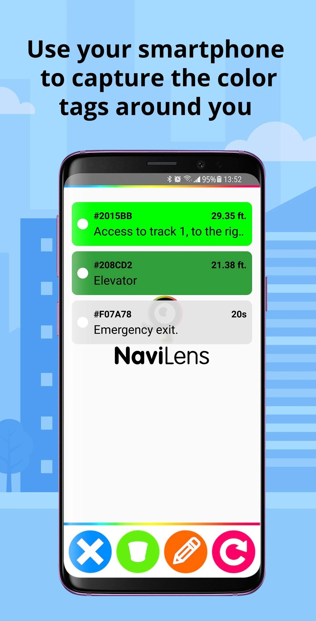 Ao contrário dos códigos QR convencionais, que exigem que o utilizador saiba exactamente onde estão localizados e aponte a câmara com precisão, os códigos NaviLens podem ser detetados automaticamente pela aplicação. Basta apontar o smartphone na direção geral do código para que a app o detete, leia a informação e a comunique ao utilizador através de um sistema de voz, fornecendo também a distância exata e a orientação relativa ao código.