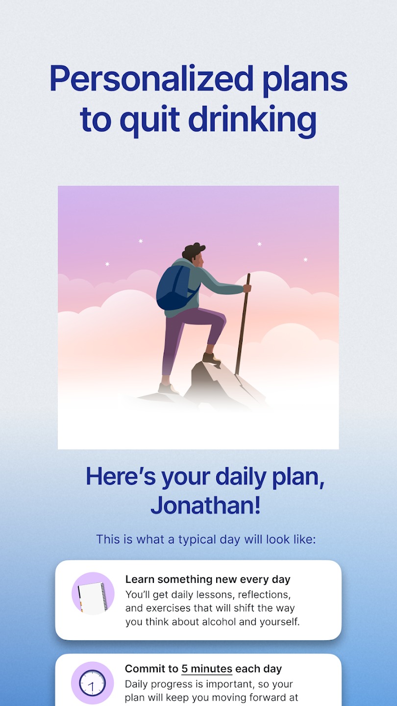 Diariamente, são apresentadas lições curtas que explicam como o álcool altera a química do cérebro, afetando neurotransmissores como a dopamina, e por que razão o corpo reage com ansiedade a certos estímulos.